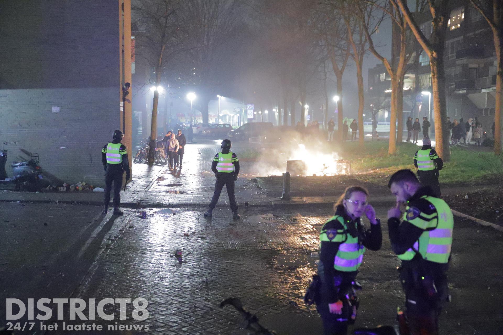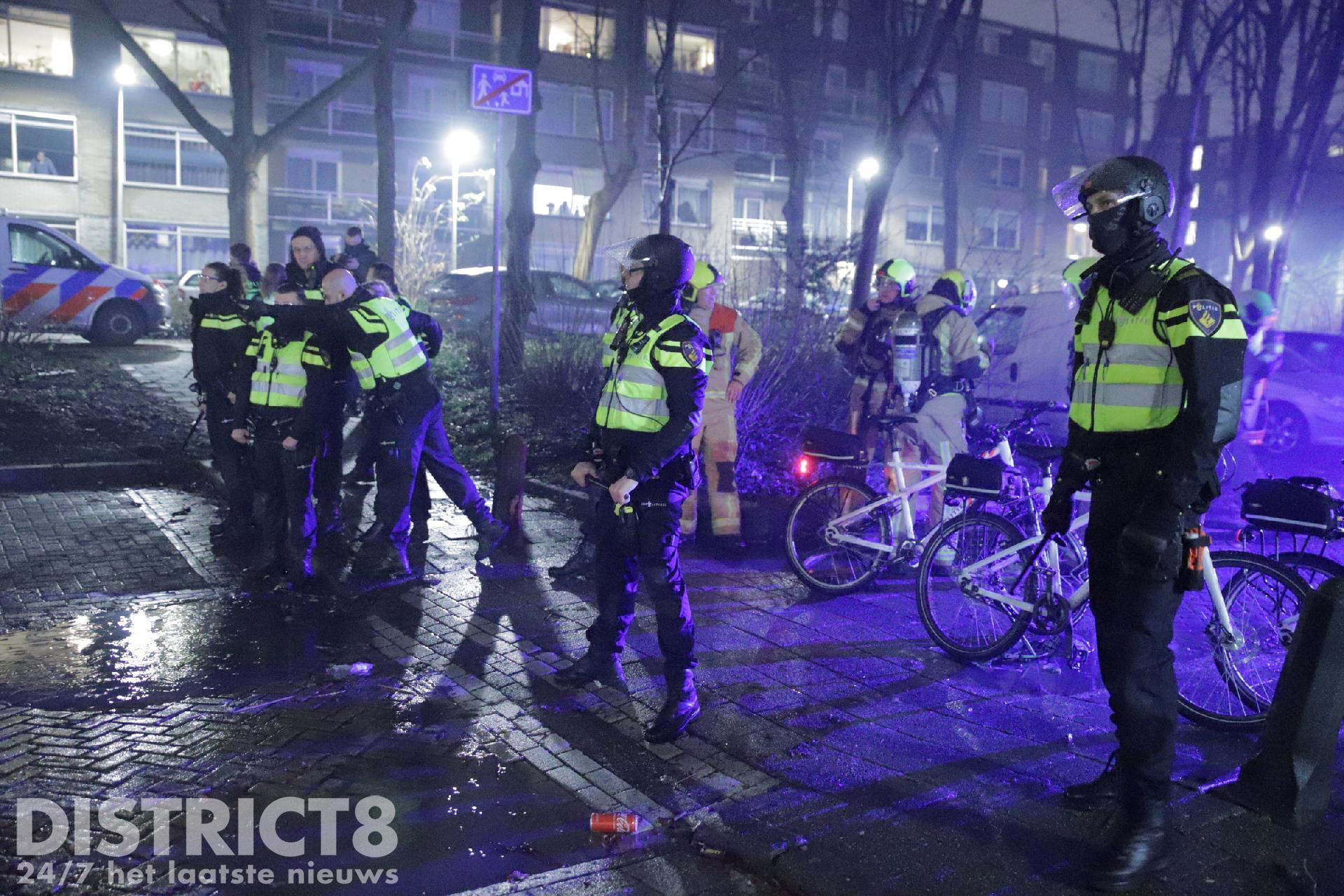 Toen de brandweer ter plaatse kwam, werden zowel zij als de aanwezige politieagenten met vuurwerk bekogeld. De politie moest op linie gaan staan om omstanders op afstand te houden zodat de brandweer veilig kon werken.