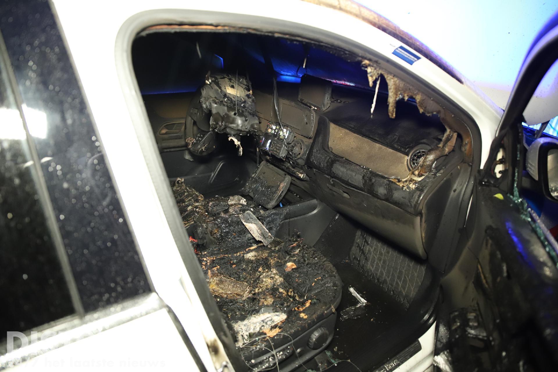 Het raam aan de bijrijderskant van het voertuig is geforceerd en waarschijnlijk is hier een brandend voorwerp naar binnen gegooid. De woordvoerder van de politie laat weten dat op het moment dat de brand uitbrak, de agenten niet aanwezig waren in of bij het voertuig.