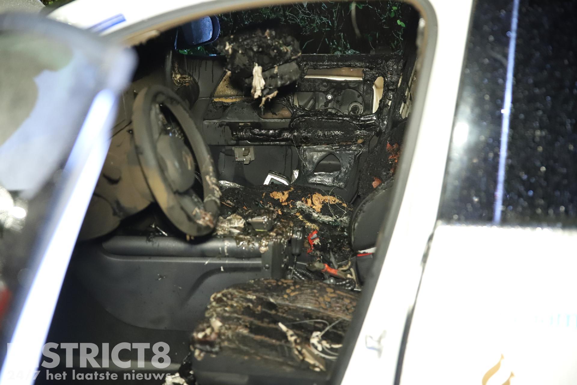 Het politievoertuig is door de brandstichting niet meer bruikbaar en is afgesleept door de politieberger.
