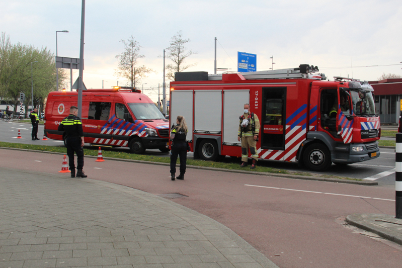 Een explosievenverkenner is onderweg om te onderzoeken of er daadwerkelijk sprake is van een explosief. De brandweer staat ook standby.