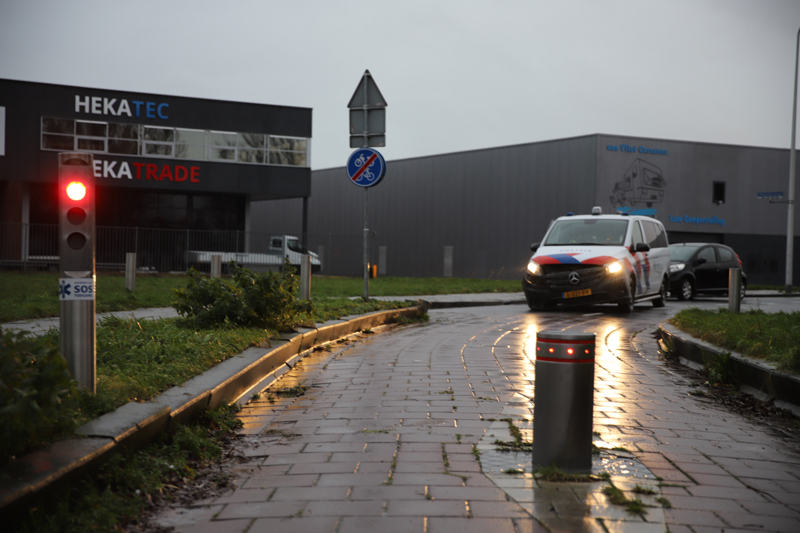 De agenten wilden via de poller op de Maasdijkseweg het industrieterrein verlaten richting het Gagelland.
