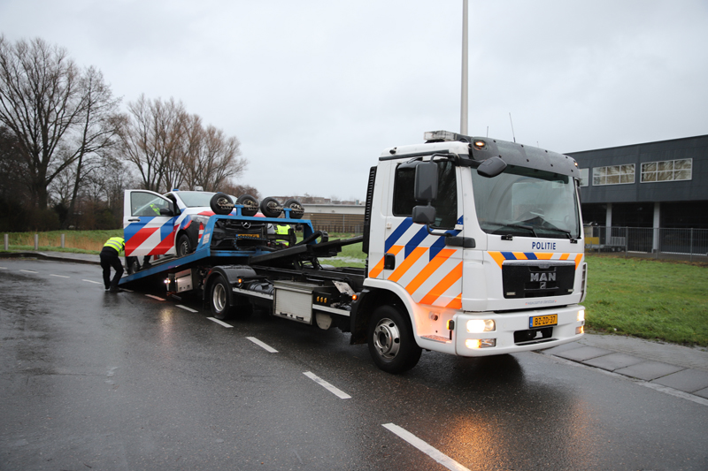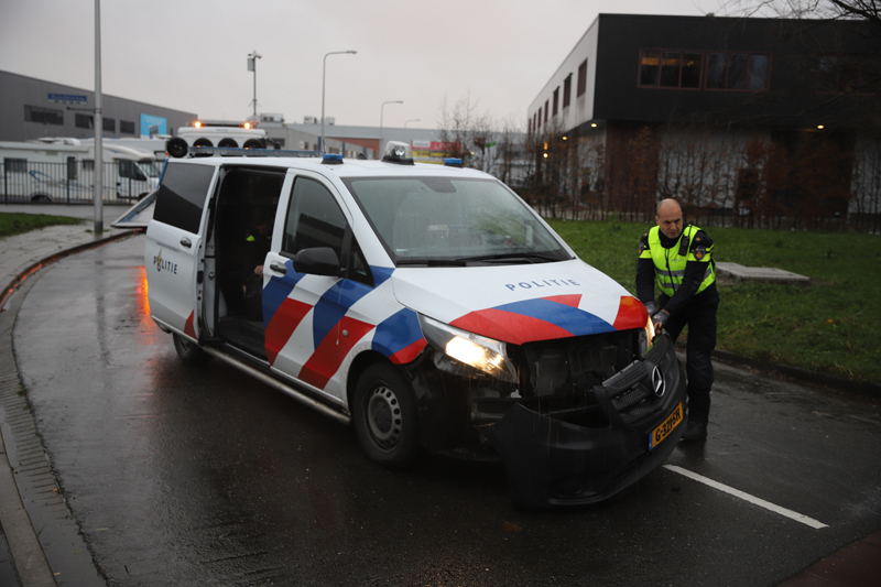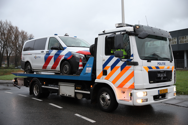 De schade aan de bus was flink en de politiebus kon dan ook niet meer verder rijden. Een berger van de politie kwam ter plaatse om het busje af te slepen.