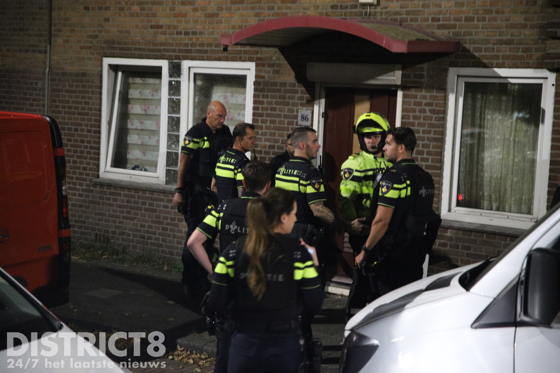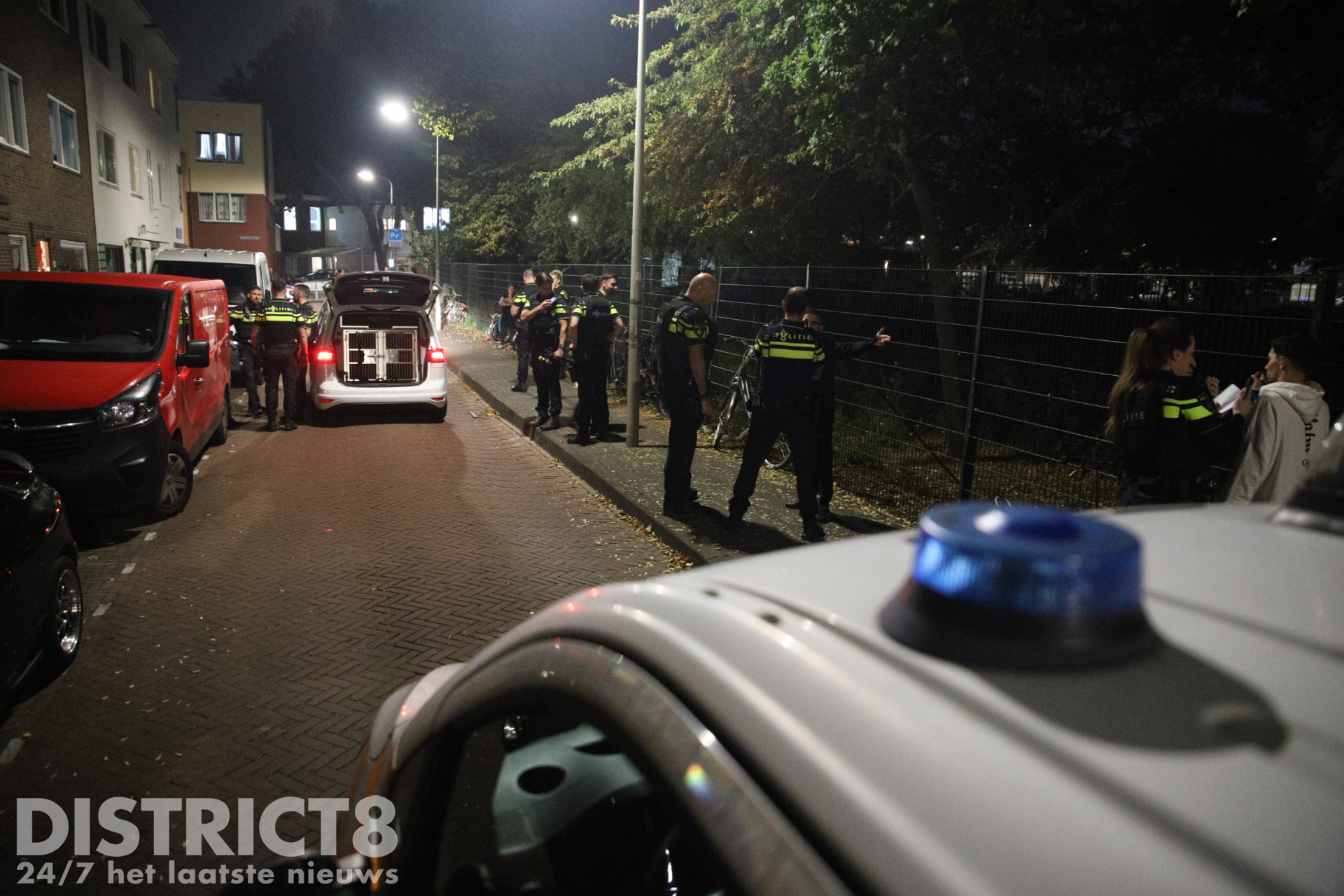 Naast de reguliere politie-eenheden kwam ook de hondenbrigade ter plaatse en cirkelde de politiehelikopter boven de wijk. Agenten droegen tijdens de inzet kogelwerende vesten.