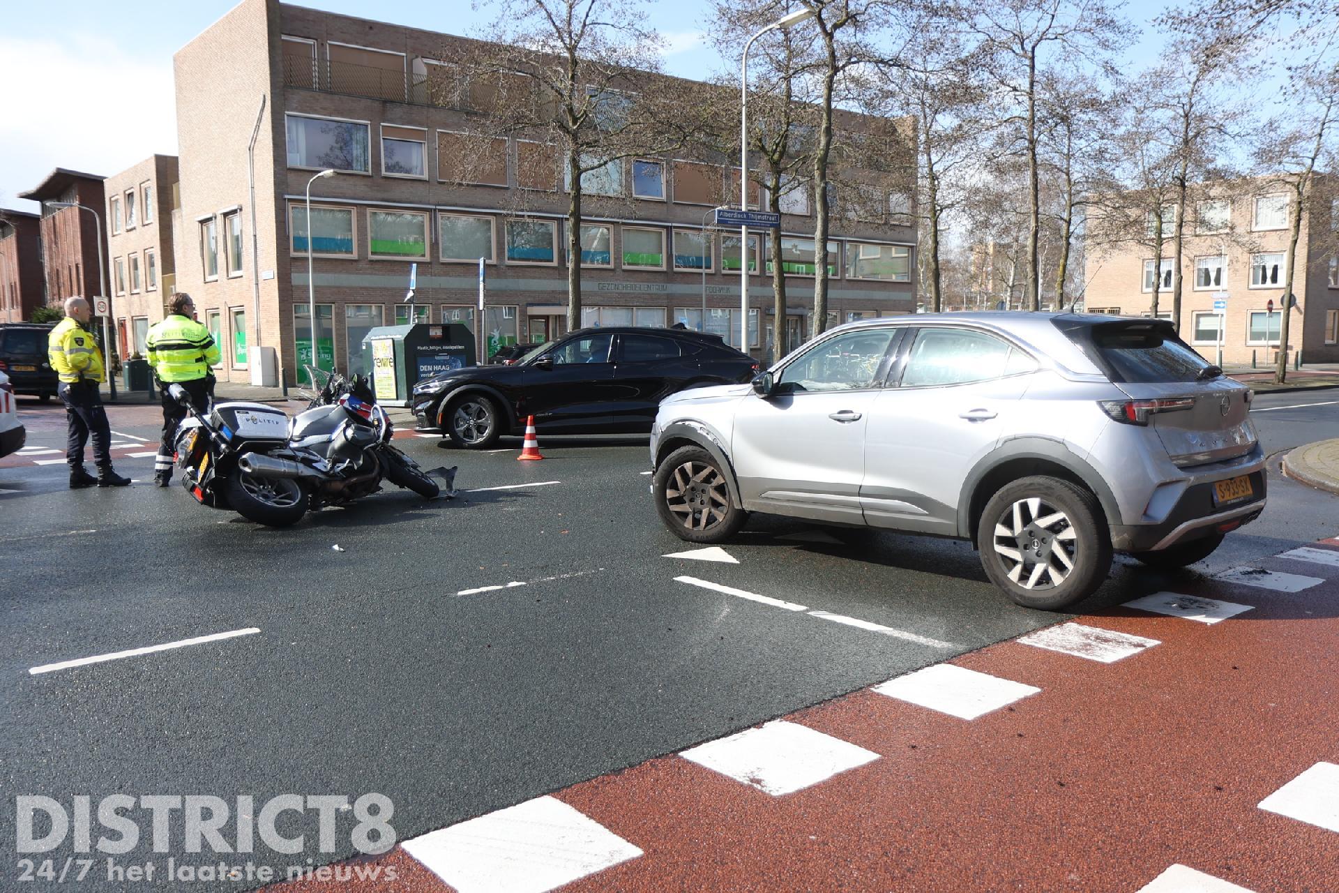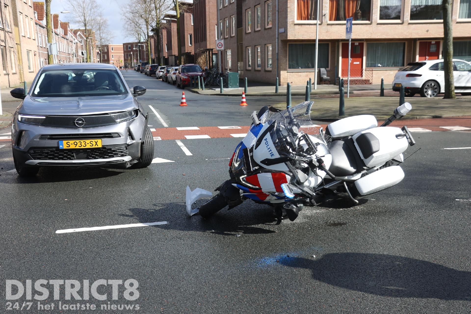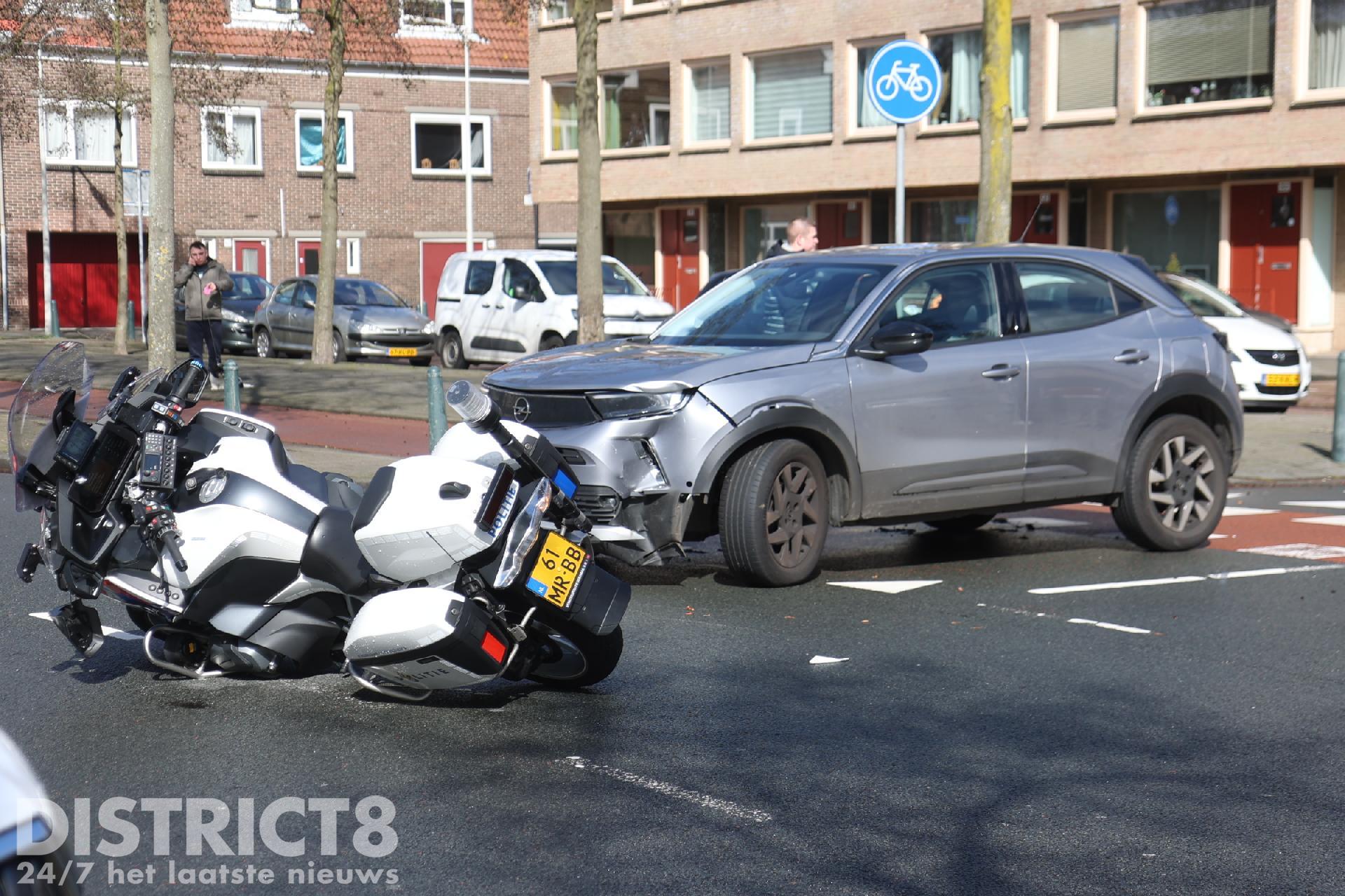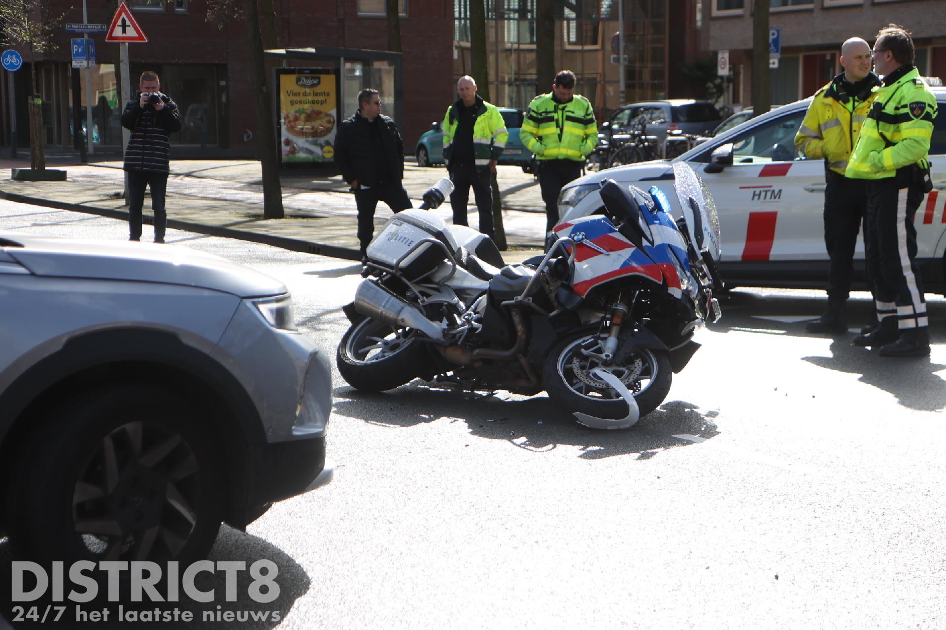 Den Haag – Op zaterdagmiddag rond 13:30 uur is op de Alberdingk Thijmstraat in Den Haag een motorrijder van de politie tijdens een spoedbegeleiding in botsing gekomen met een automobilist.