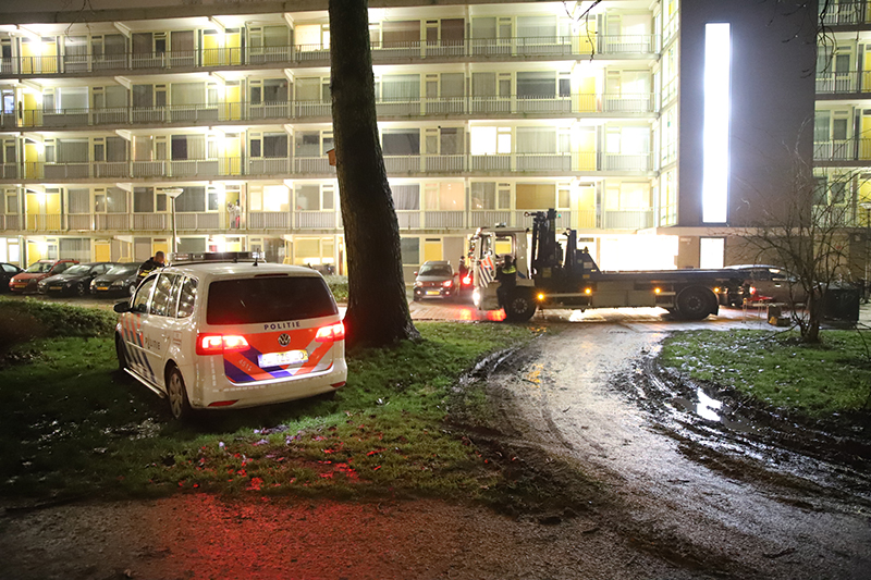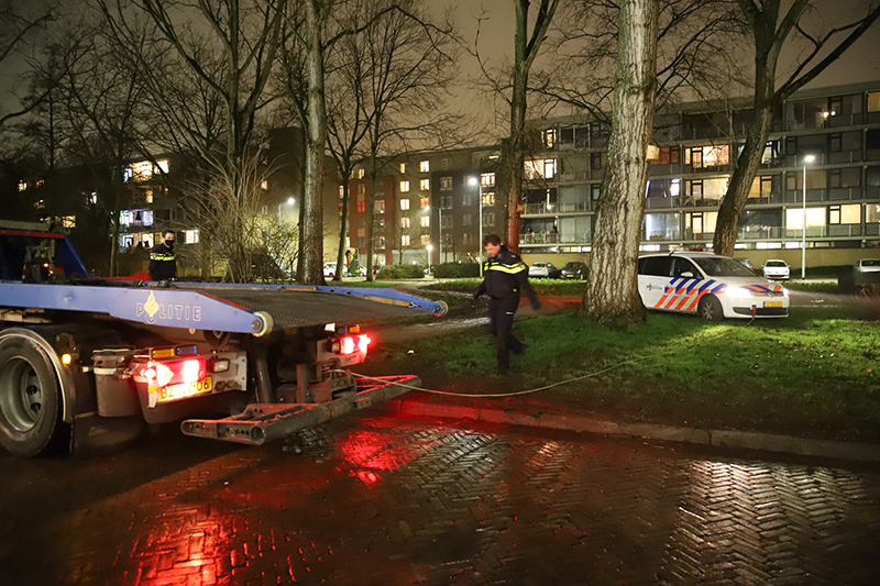 Delft – Donderdagavond heeft er een politievoertuig vast gezeten in het gras aan de Haydnlaan in Delft.