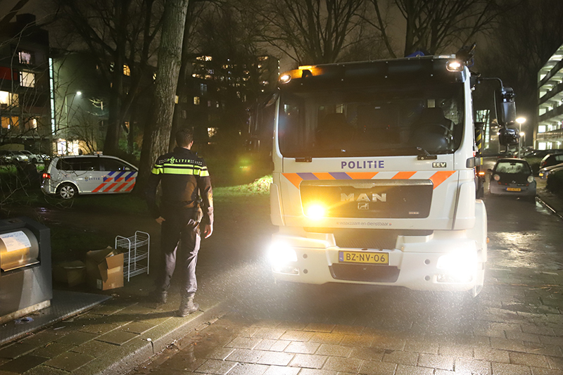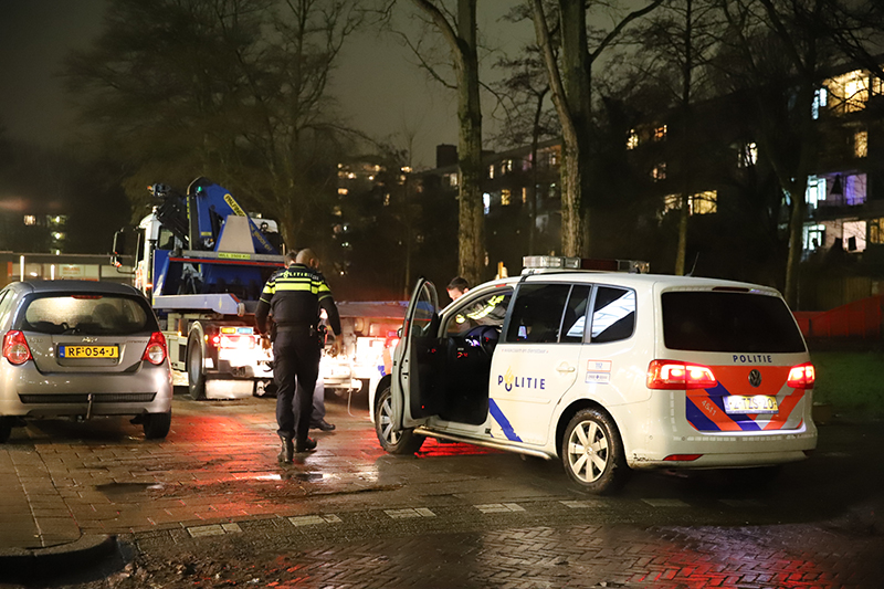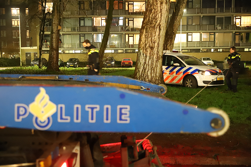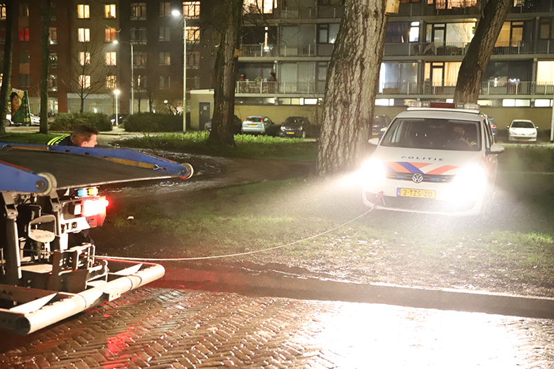 Medewerker van Team Transport Den Haag kwamen met het bergingsvoertuig ter plaatse en hebben met behulp van een lier het dienstvoertuig los kunnen trekken.