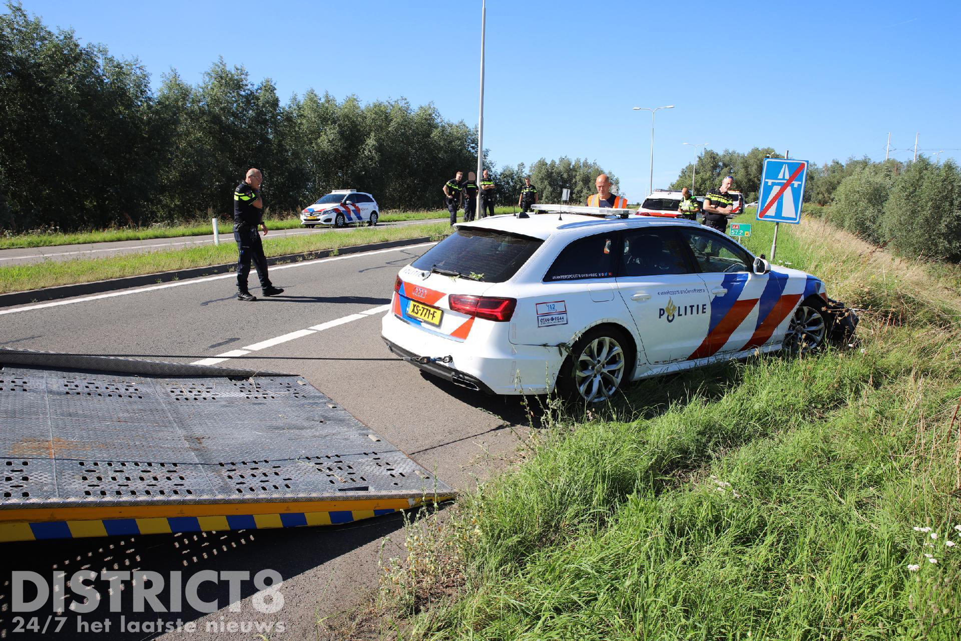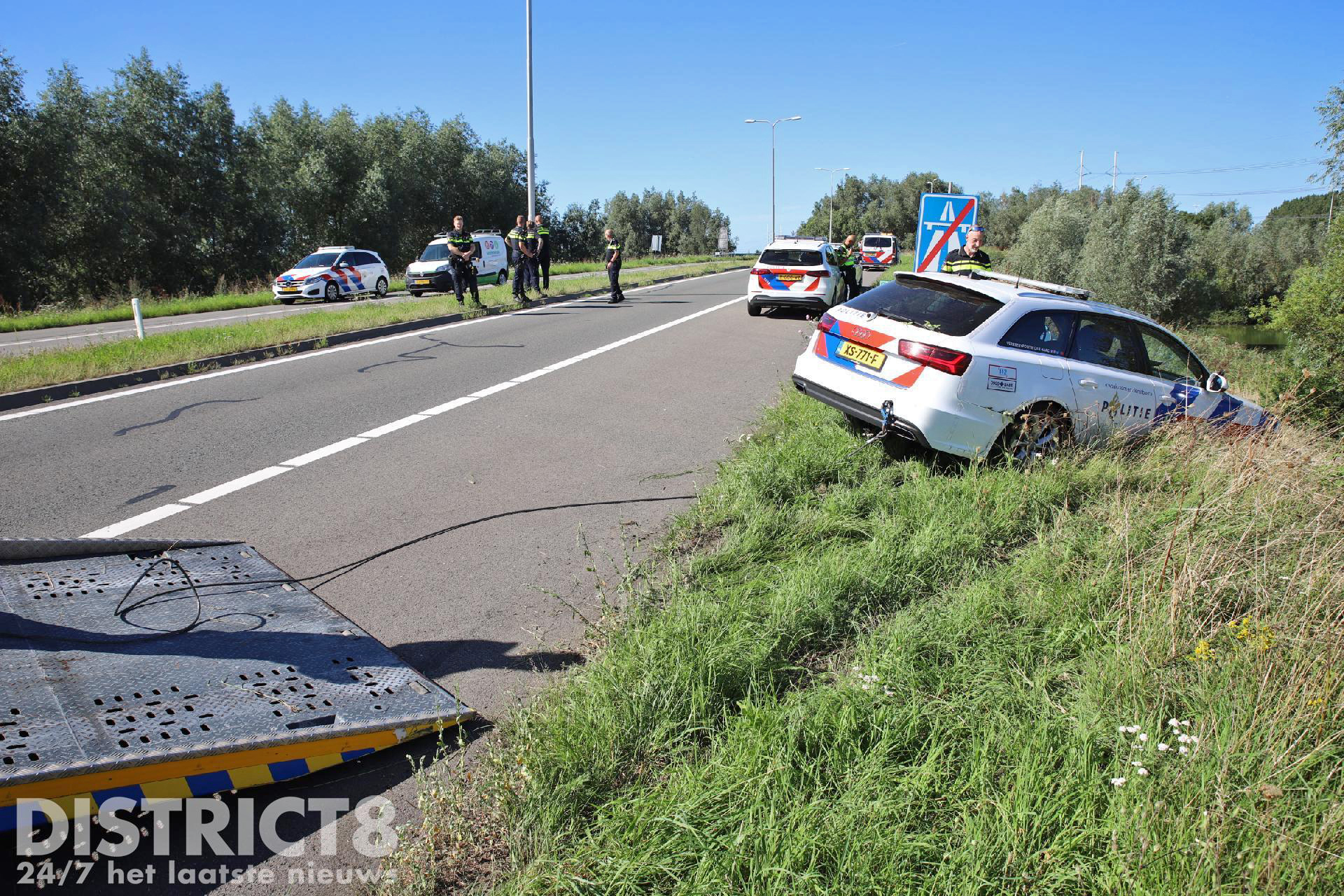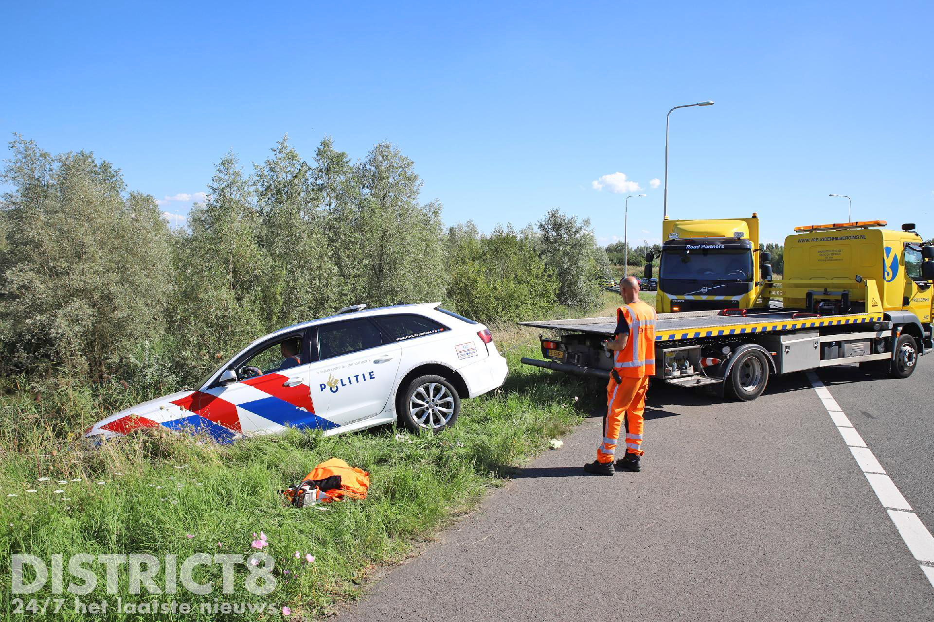 Schipluiden – Op de afrit van de A4 bij Schipluiden is maandagmiddag 21 augustus een SIV (Snel Interventie Voertuig) van de Haagse verkeerspolitie van het talud geraakt. Omstreeks 14:30 uur was de politiewagen onderweg naar een melding toen deze de afrit van de A4 richting de N470 nam. Door nog onbekende oorzaak raakte de SIV halverwege van de weg en reed van het talud af.