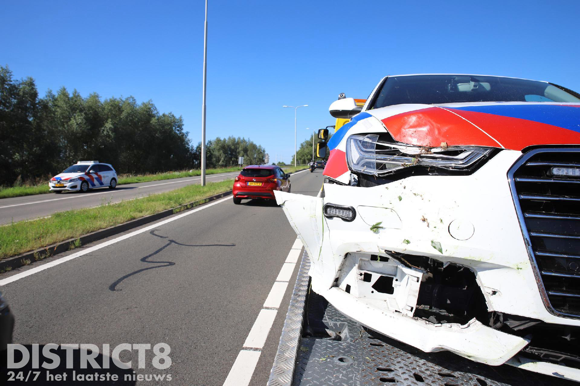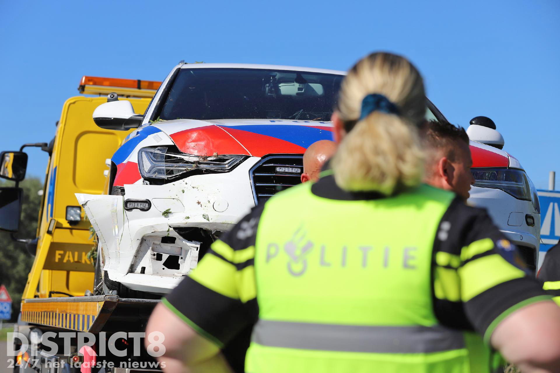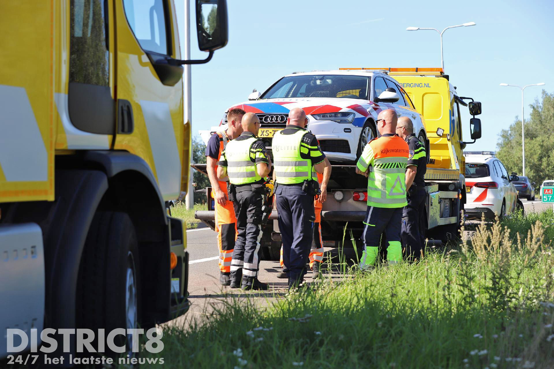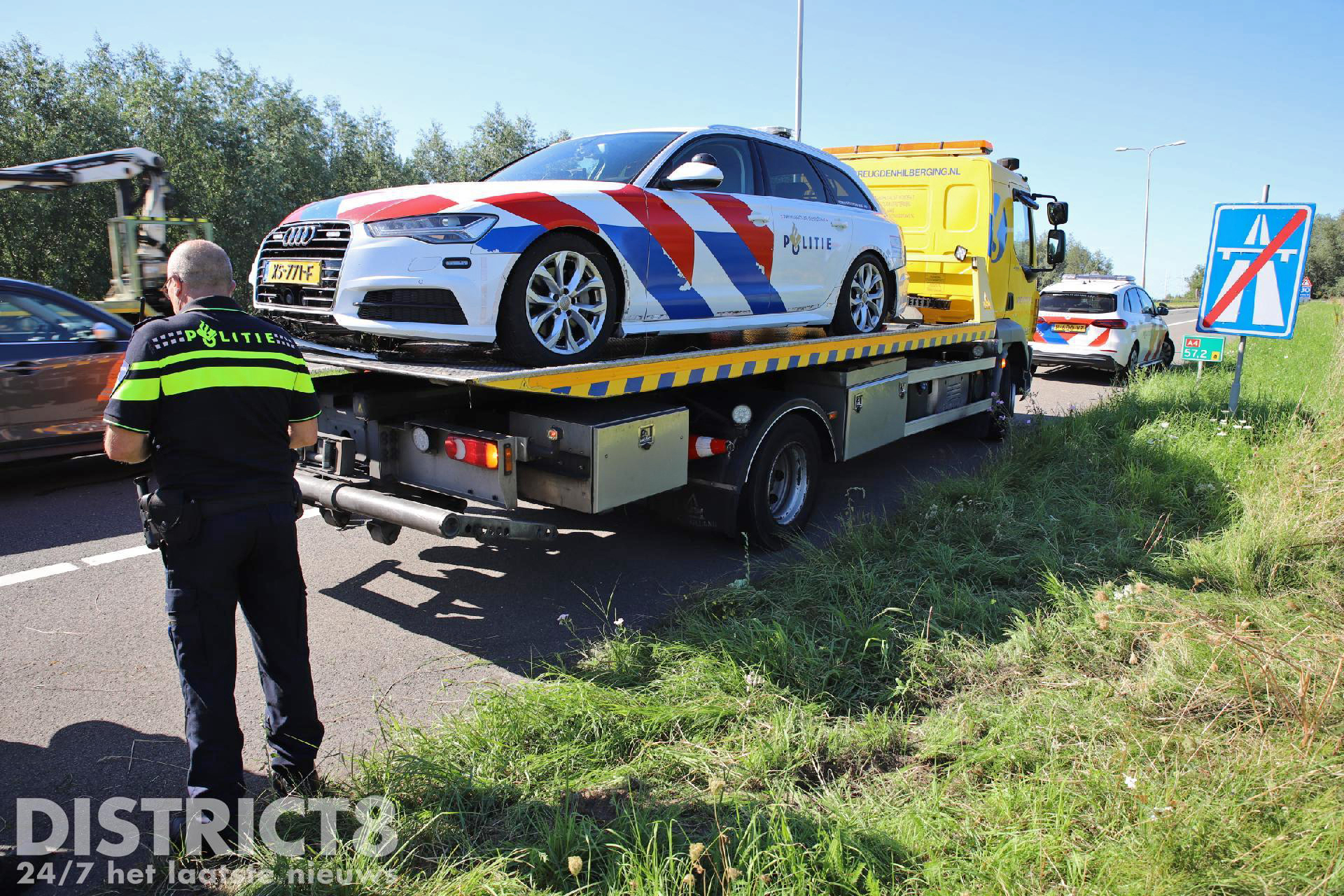Schipluiden – Op de afrit van de A4 bij Schipluiden is maandagmiddag 21 augustus een SIV (Snel Interventie Voertuig) van de Haagse verkeerspolitie van het talud geraakt. Omstreeks 14:30 uur was de politiewagen onderweg naar een melding toen deze de afrit van de A4 richting de N470 nam. Door nog onbekende oorzaak raakte de SIV halverwege van de weg en reed van het talud af.