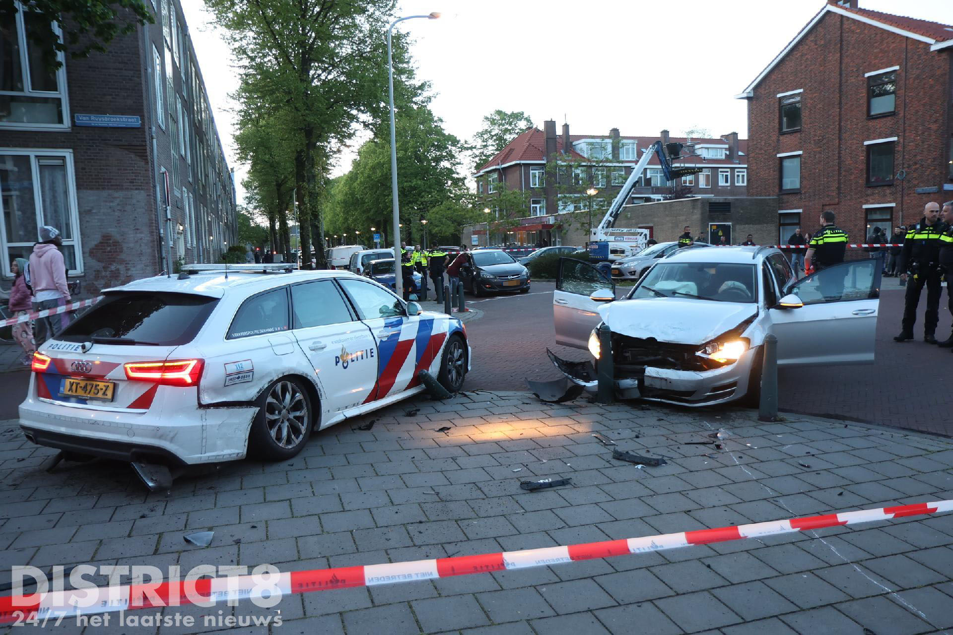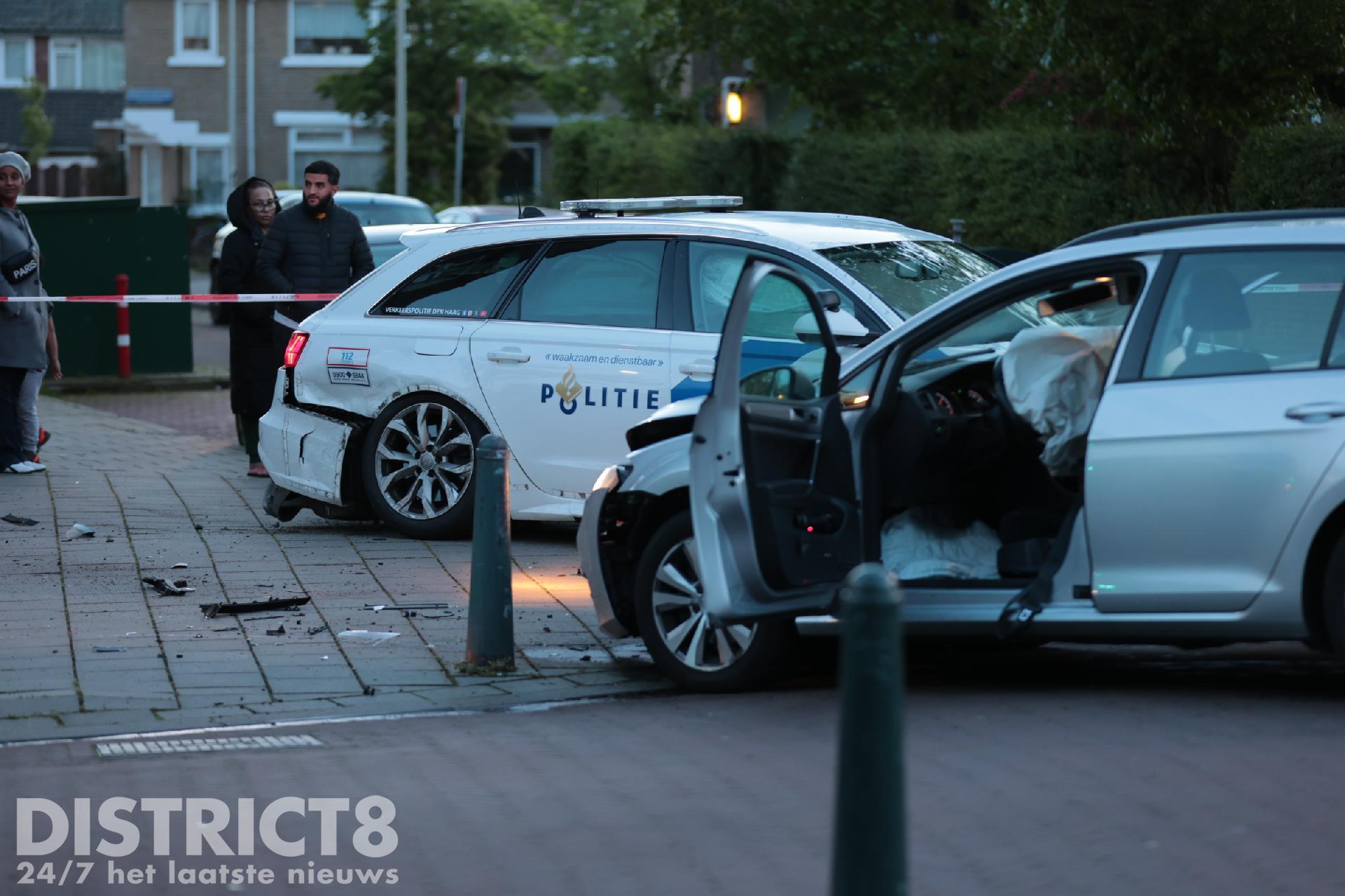 Twee politiewagens zwaar beschadigd na aanrijding Anna Bijnslaan Den Haag