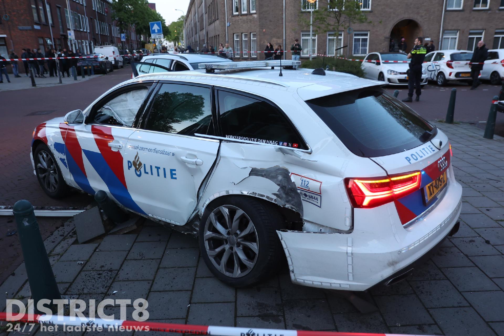 Home Den Haag Twee politiewagens zwaar beschadigd na aanrijding Anna Bijnslaan Den Haag