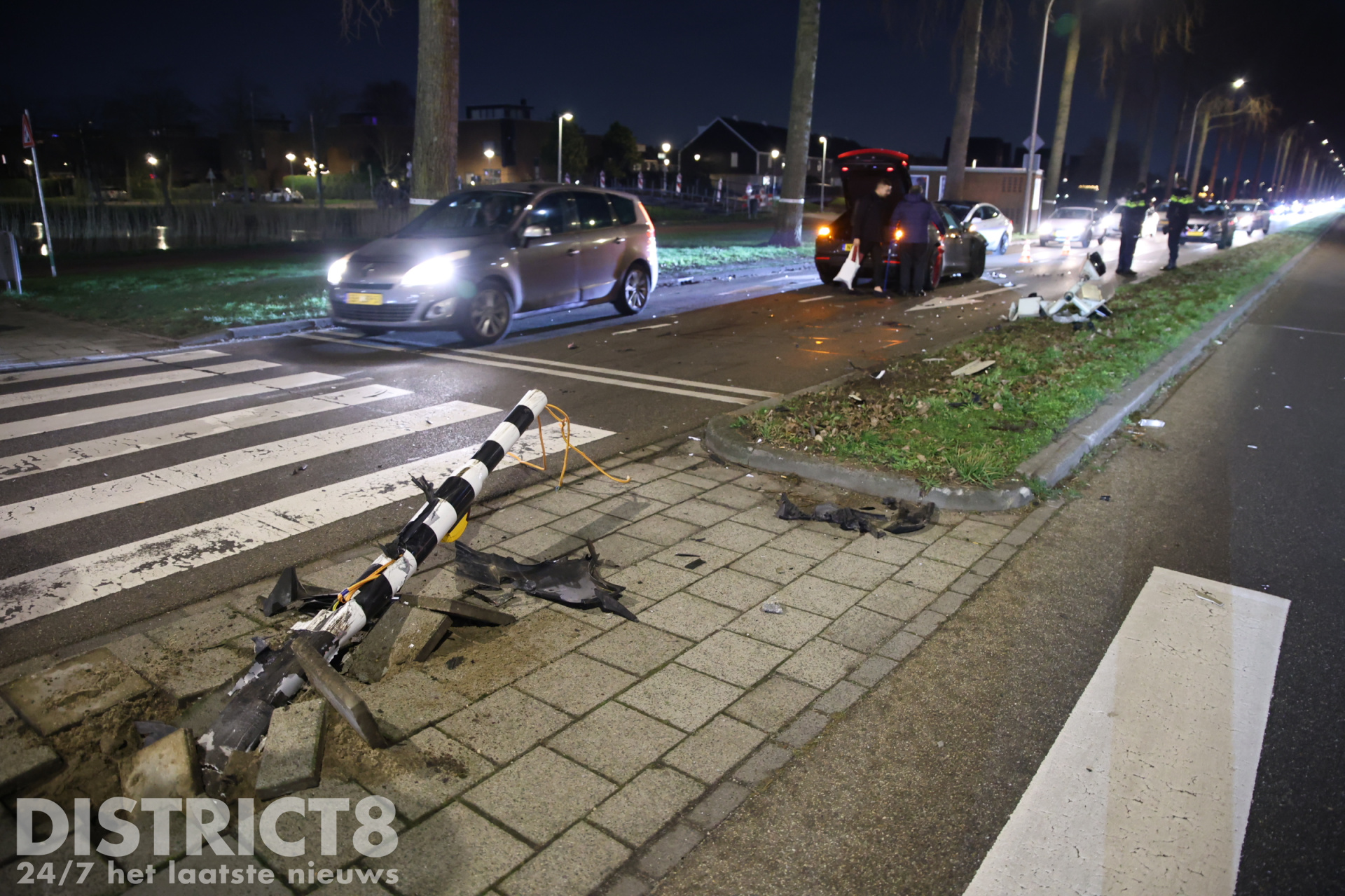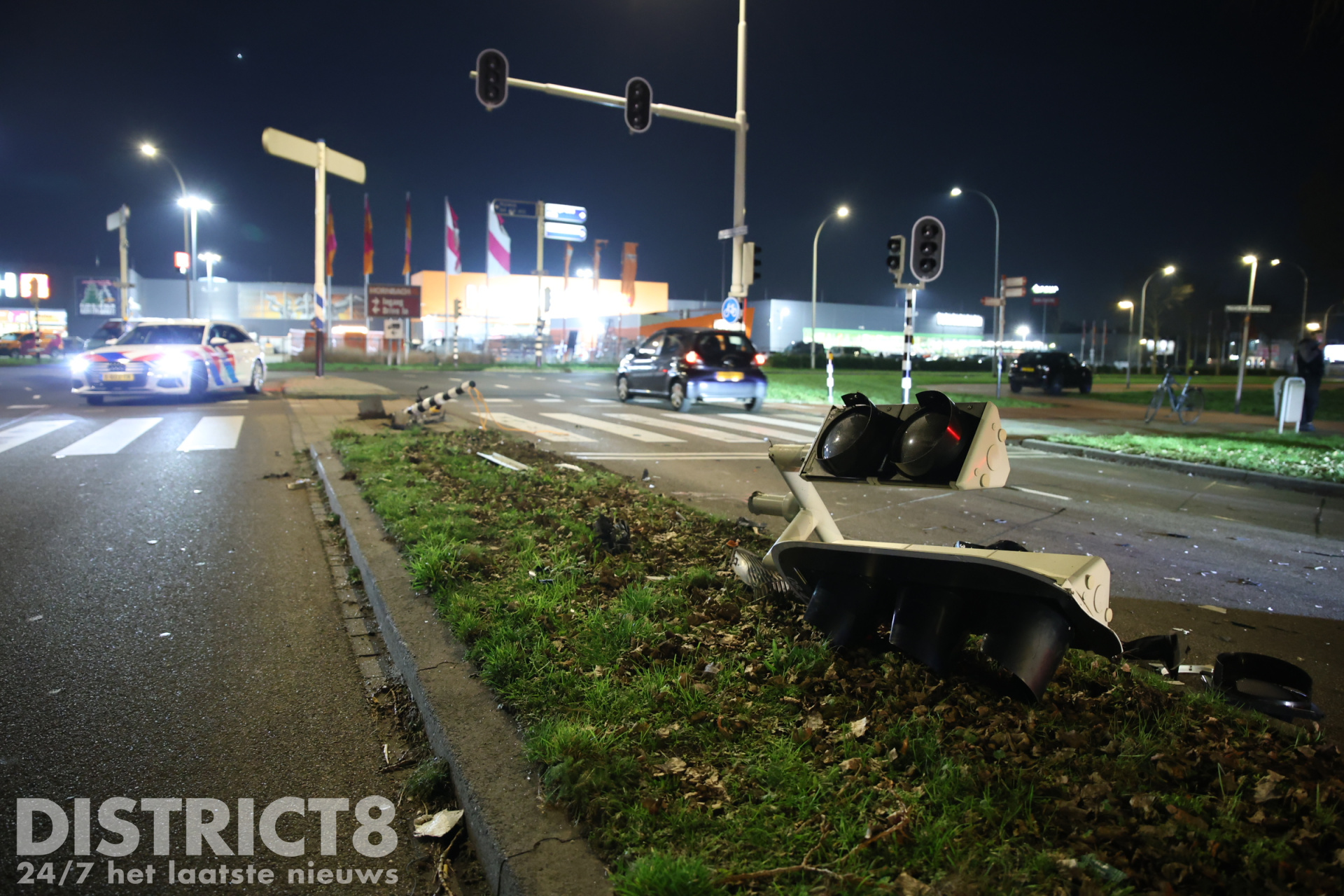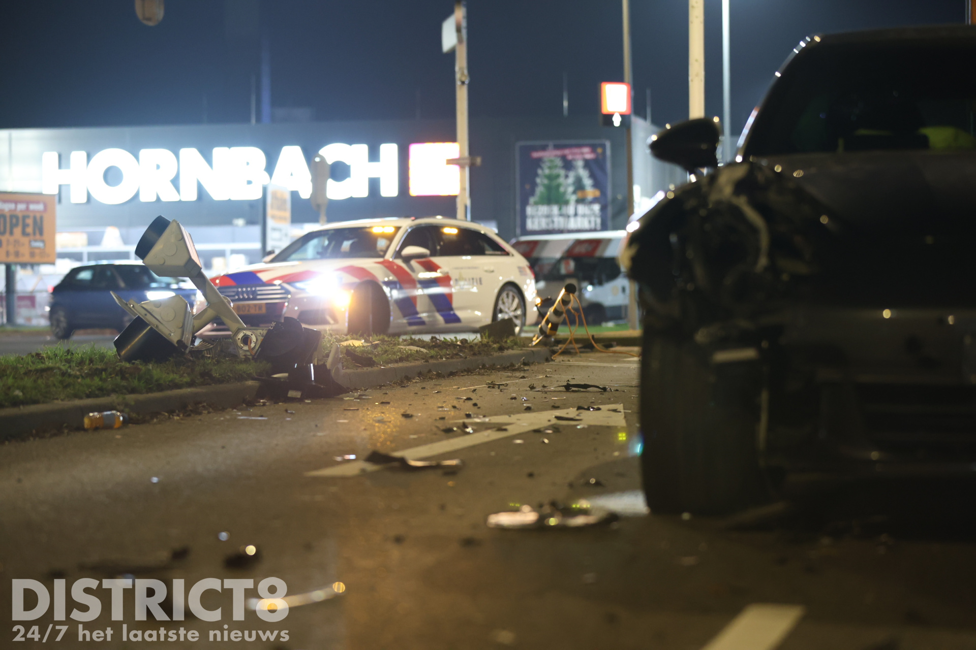 Het ongeval heeft aanzienlijke schade veroorzaakt. De auto is total loss en een paal van de verkeerslichten werd omvergereden, waardoor de verkeersregelinstallatie op de kruising is uitgevallen. Hulpdiensten waren snel ter plaatse.