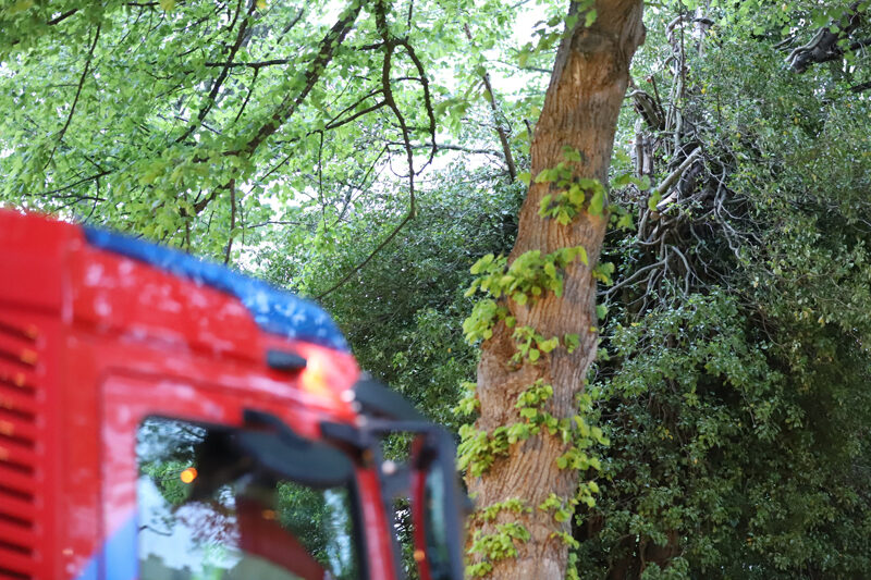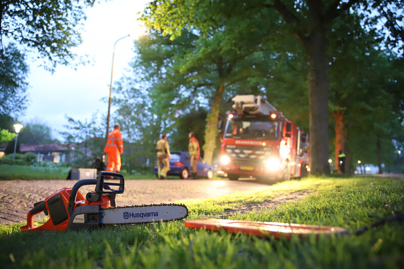 Een auto stond onder de boom geparkeerd, het gevaar bestond dat deze werd geraakt door de tak als de brandweer ging zagen. De politie heeft het kenteken nagetrokken, maar omdat dit een buitenlands voertuig betrof kon er geen informatie worden achterhaald over een eigenaar die de auto kon verplaatsen.