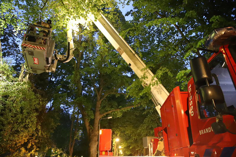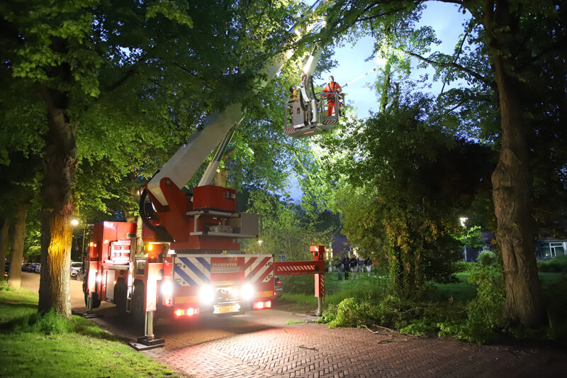 De tak brak af en steunde voor een deel op een andere boom, omdat de tak boven de weg hing werd de brandweer gewaarschuwd. Toen de tankautospuit ter plaatse kwam werd duidelijk dat de tak te hoog hing, hierdoor kon de tak niet worden bereikt. Een hoogwerker van de brandweer werd ingeschakeld om alsnog bij de tak te kunnen.