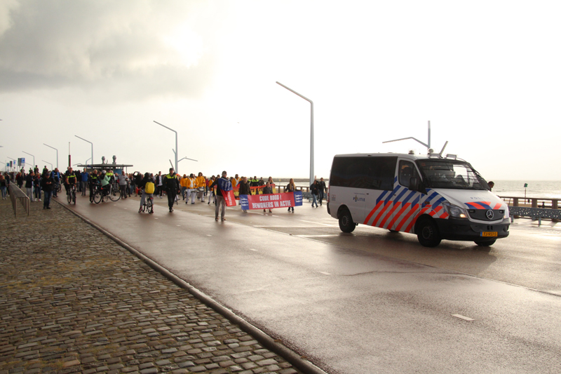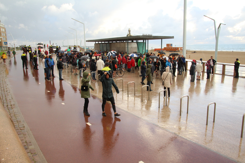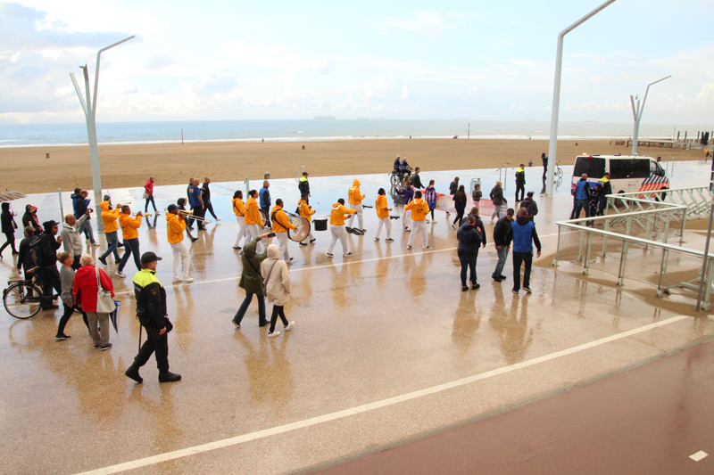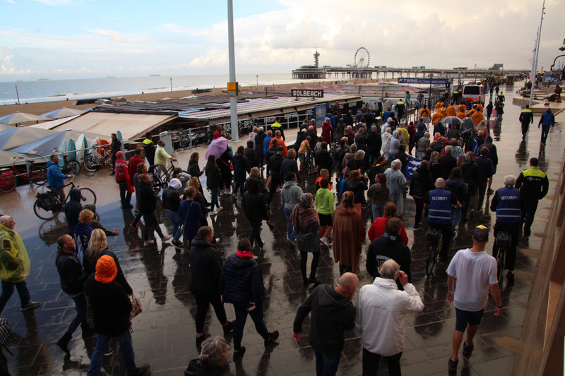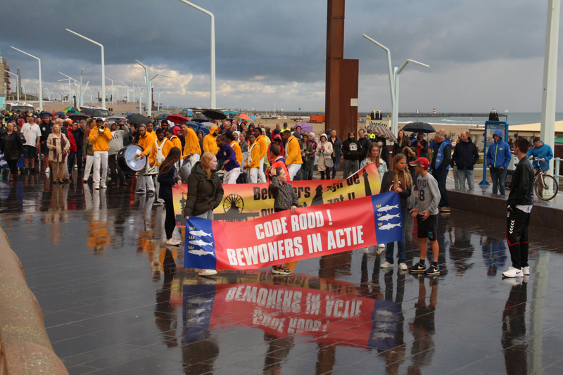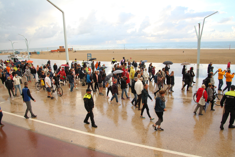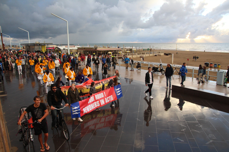 De bewoners verzamelden zich bij de Vissershavenweg en liepen vanaf daar over de boulevard naar het Kurhaus. Voor het Kurhaus verzamelde alle deelnemers waar de protestmars na een kort optreden van de meelopende drumband beëindigd werd. Onderweg werd een aantal keren kort geschuild voor hele extreme regenbuien.