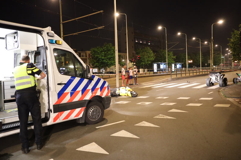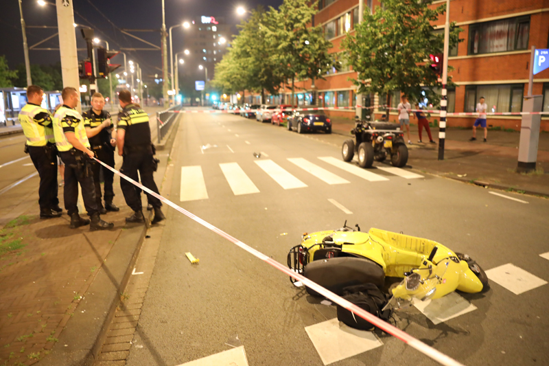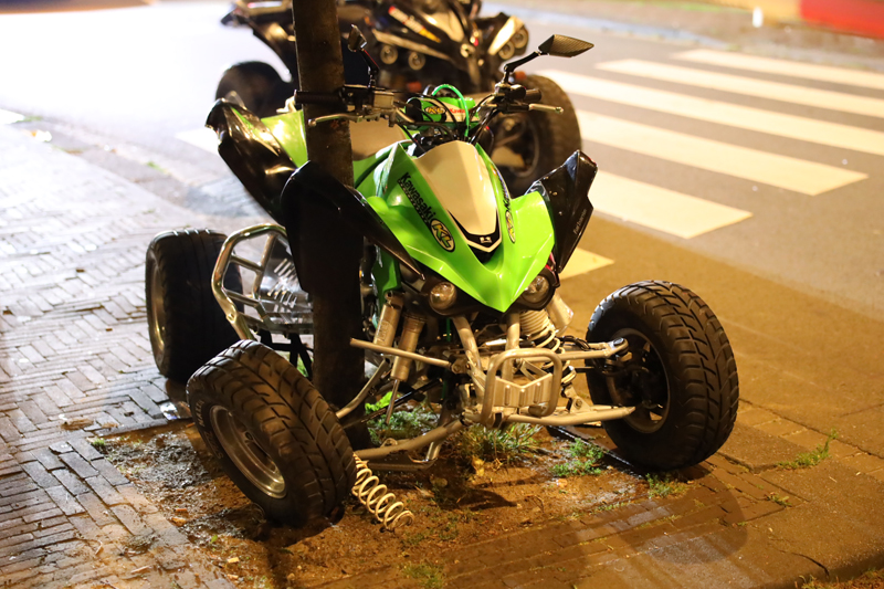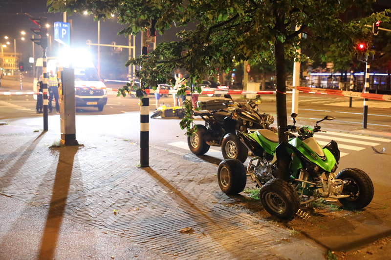 Den Haag – Op de Lijnbaan heeft een botsing plaatsgevonden tussen een scooter en een quad. Even na elf uur dinsdagavond vond de aanrijding plaats. Naar verluid reden twee quads vanaf de Vaillantlaan de Lijnbaan op. De opzittende van de scooter kwam vanaf de Prinsegracht en stak de Lijnbaan over toen hij de quad hem aantikte. De groene quad knalde vervolgens tegen een boom. De opzittende van de quad is gewond geraakt en vervoerd naar het ziekenhuis. Over verwondingen van de scooterrijder is niks bekend. De weg is afgesloten in verband met uitgebreid onderzoek door de Verkeers Ongevallen Analyse van de politie.