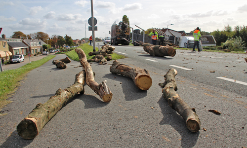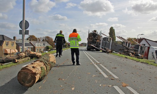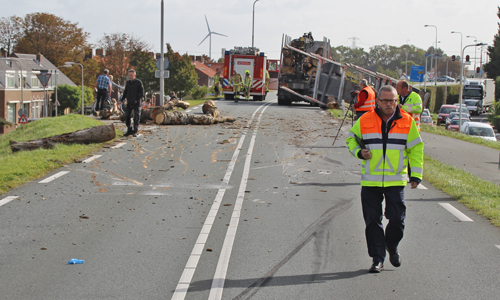 Maasdijk – Woensdagmiddag 3 oktober heeft er op de Maasdijk in ‘s-Gravenzande een ongeval plaatsgevonden met een vrachtwagen. De trailer van de vrachtwagen kantelde na het ongeval, hierdoor viel de lading die grotendeels uit houtstammen bestond van de trailer. Deze kwamen grotendeels op de weg terecht. Een van de houtblokken knalde op een voorbij-rijdende auto, de bestuurder van het voertuig kon wonder boven wonder nog zelf uitstappen. De bestuurder is in de ambulance gecontroleerd en naar het ziekenhuis vervoerd. De politie en de brandweer zijn ter plaatse voor verdere afhandeling van het incident. De Maasdijk is afgesloten voor al het verkeer. De Verkeers Ongevallen Analyse (VOA) komt ter plaatse voor verder onderzoek.
