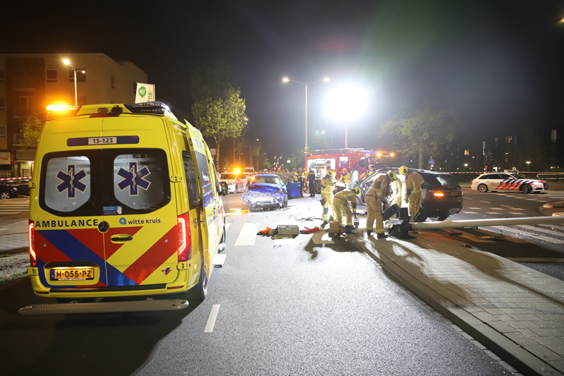 De brandweer heeft de bestuurder van de zwarte auto uit de auto gehaald waarna hij is gecontroleerd door ambulancepersoneel, vervoer bleek uiteindelijk niet noodzakelijk.