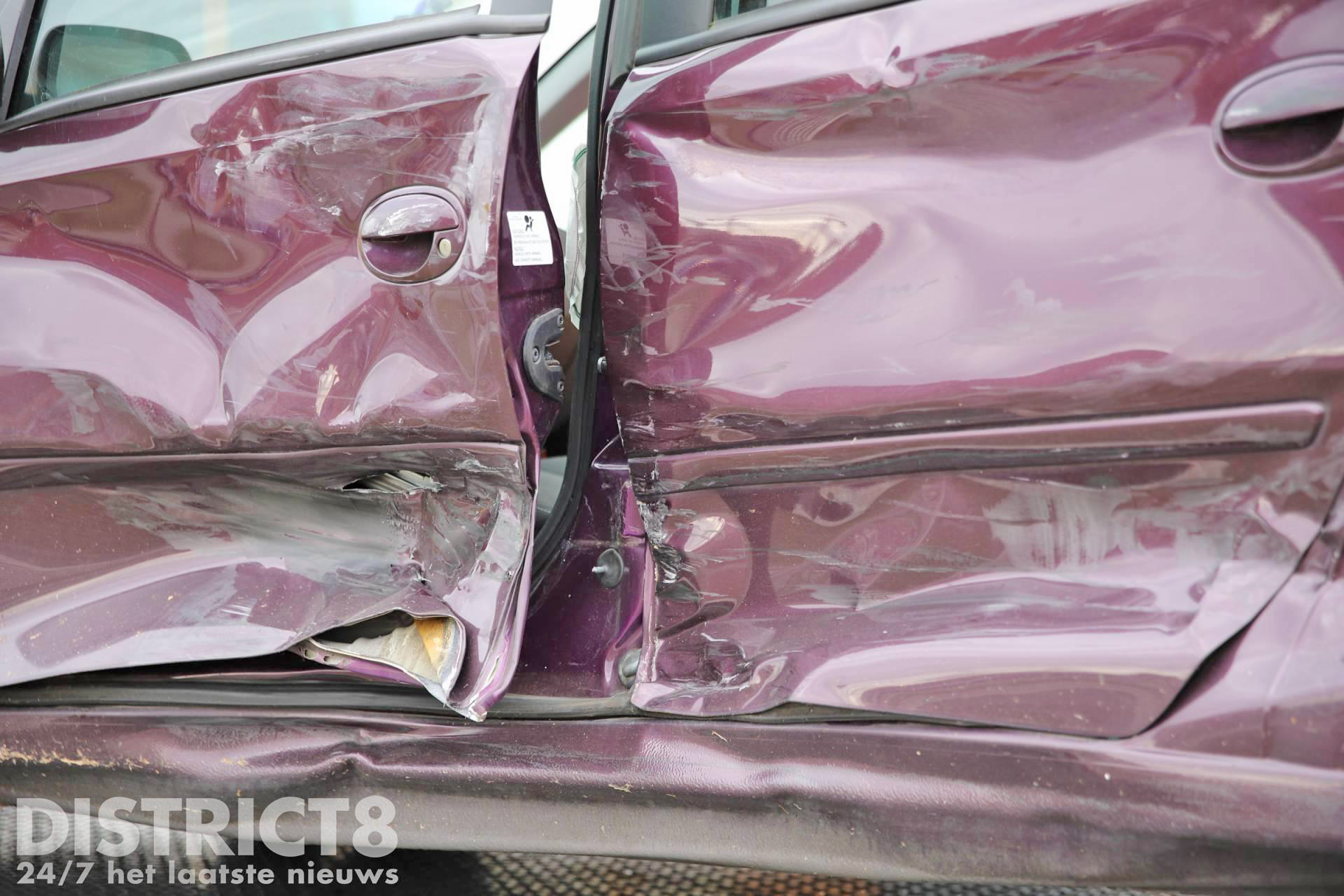 Een berger is ter plaatse gekomen om de voertuigen af te slepen, de kruising lag door de aanrijding bezaaid met glasscherven.