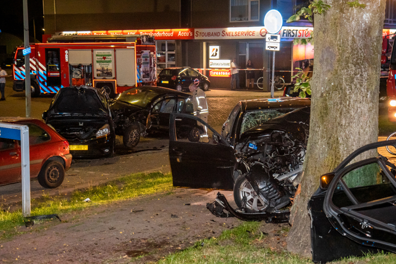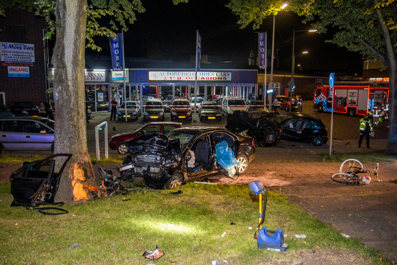 Bij het ongeval zijn tenminste drie personen gewond geraakt waarvan twee zwaargewond. Eén auto kwam tot stilstand tegen een boom, met vermoedelijk zeer hoge snelheid gezien de impact. Een andere auto kwam letterlijk in een andere auto tot stilstand. Ook een fiets raakte zwaar beschadigd toen deze door een van de auto’s werd aangereden. De fietser is behandeld in een van de ambulances.
