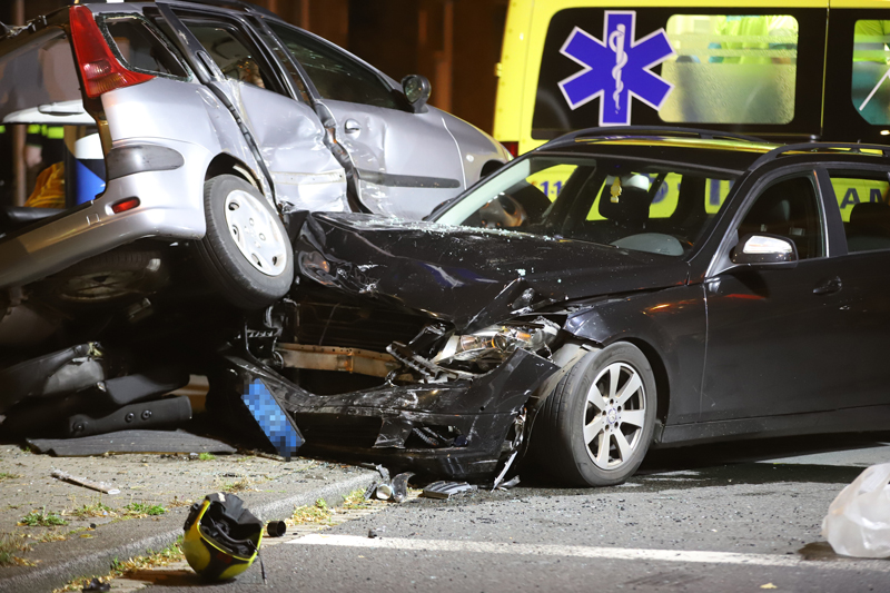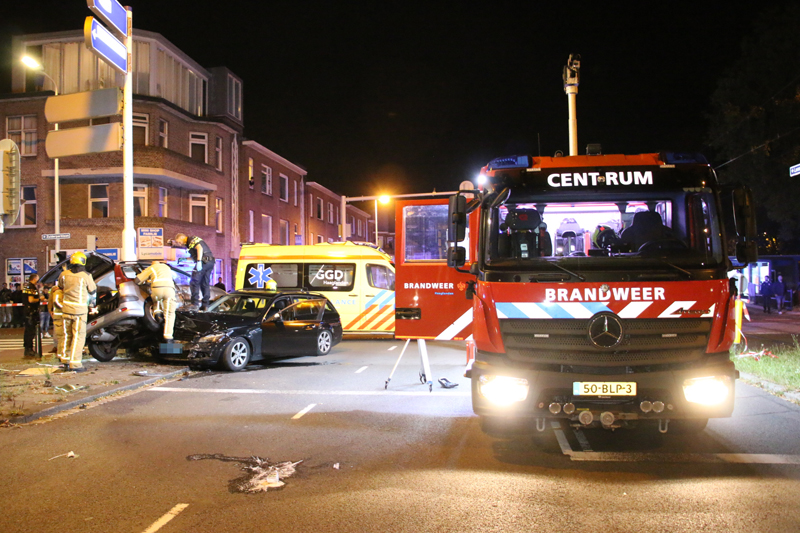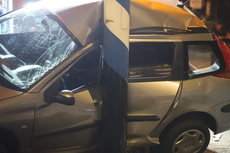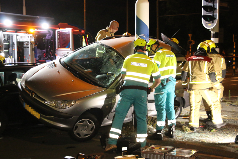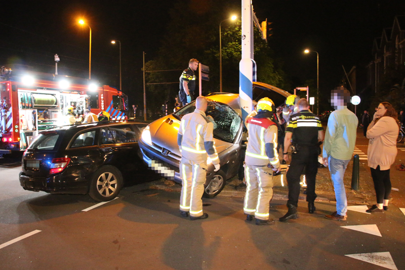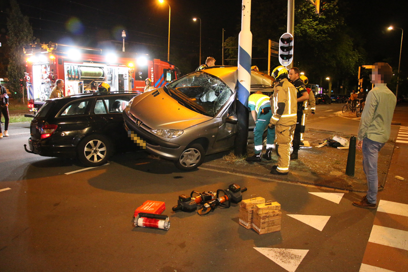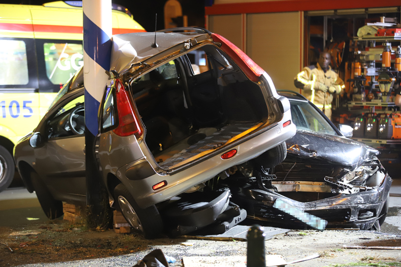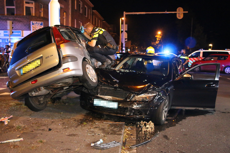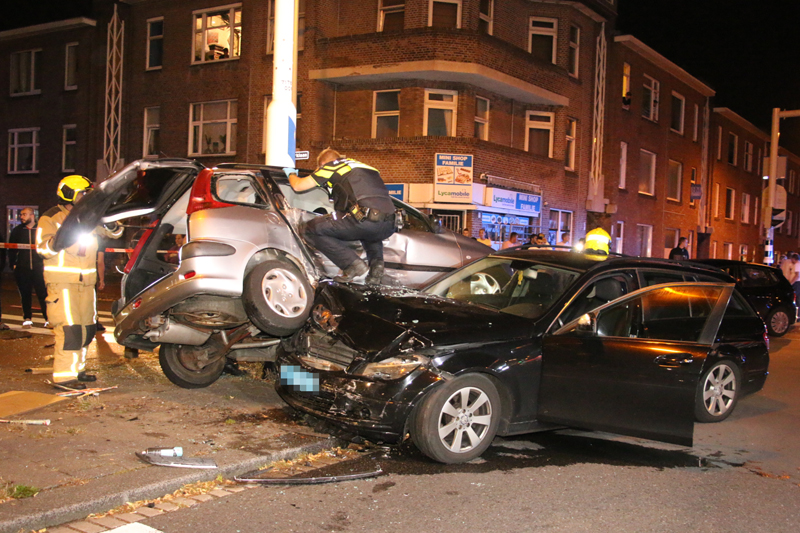 De grijze auto werd na de aanrijding gelanceerd en knalde tegen een verkeerspaal aan, de zwarte auto knalde vervolgens weer op de grijze auto waardoor de grijze auto vast zat tussen de zwarte auto en de verkeerspaal.