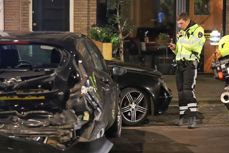 Door de aanrijding was de Fluwelen Burgwal enige tijd afgesloten, de politie heeft onderzoek gedaan.