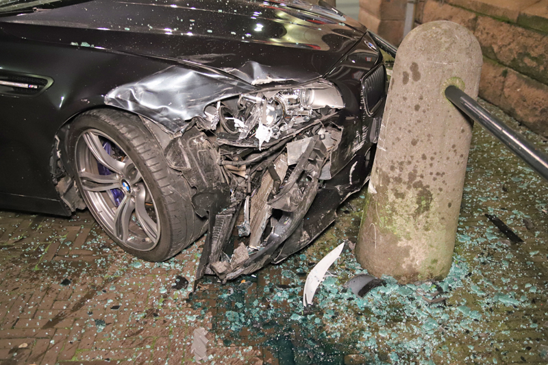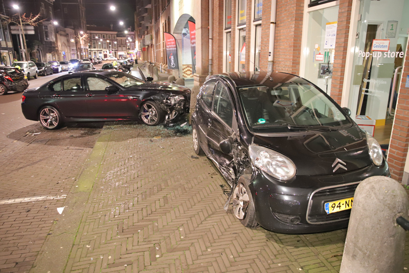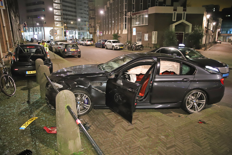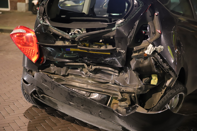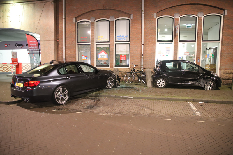 Door de aanrijding schoot de BMW tegen een geparkeerde Citroën aan, deze schoot door de klap van de parkeerplek af en kwam tot stilstand tussen twee betonnen pilaren. De BMW kwam daarna ook zelf tot stilstand tegen de betonnen pilaren.