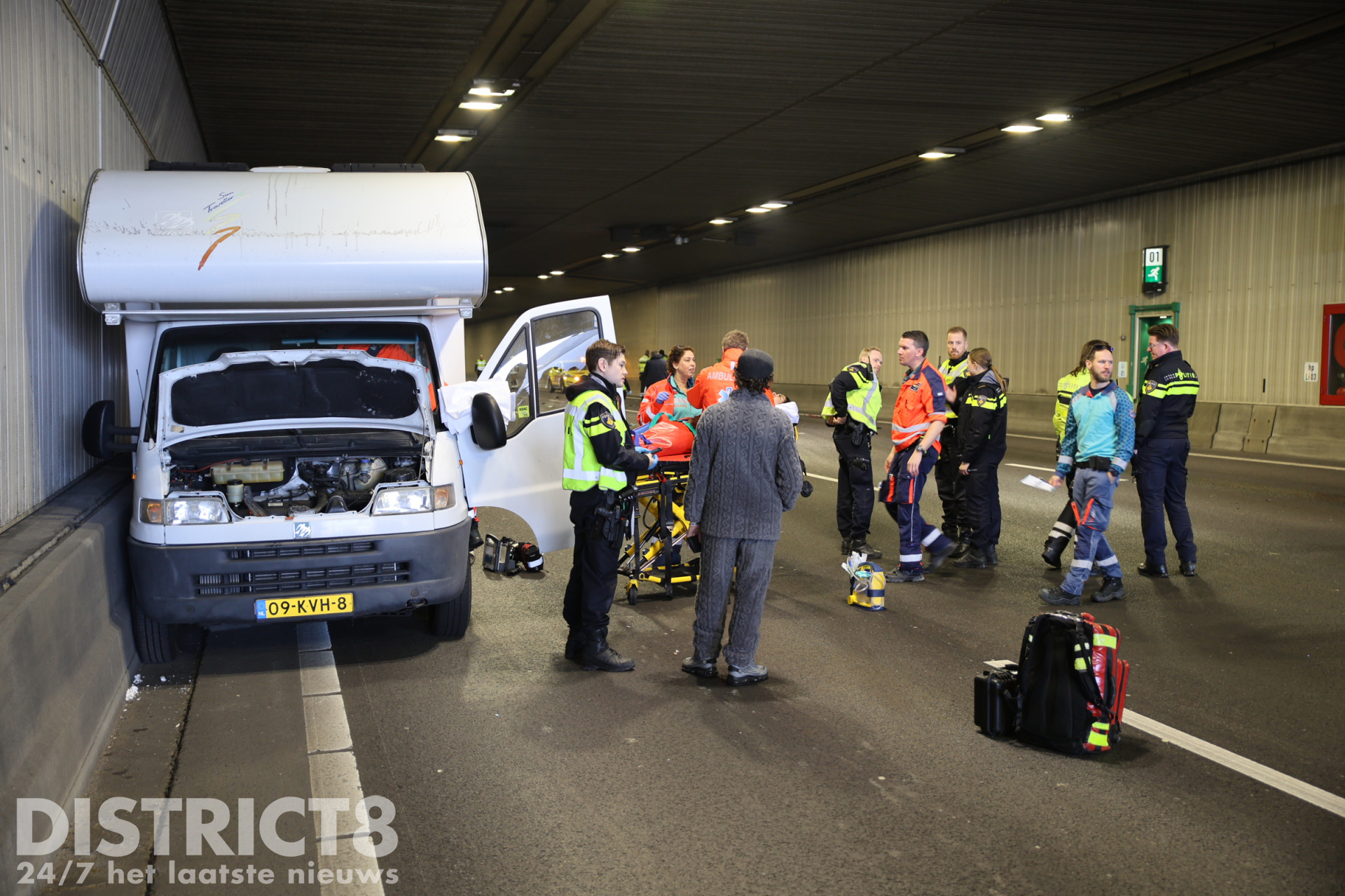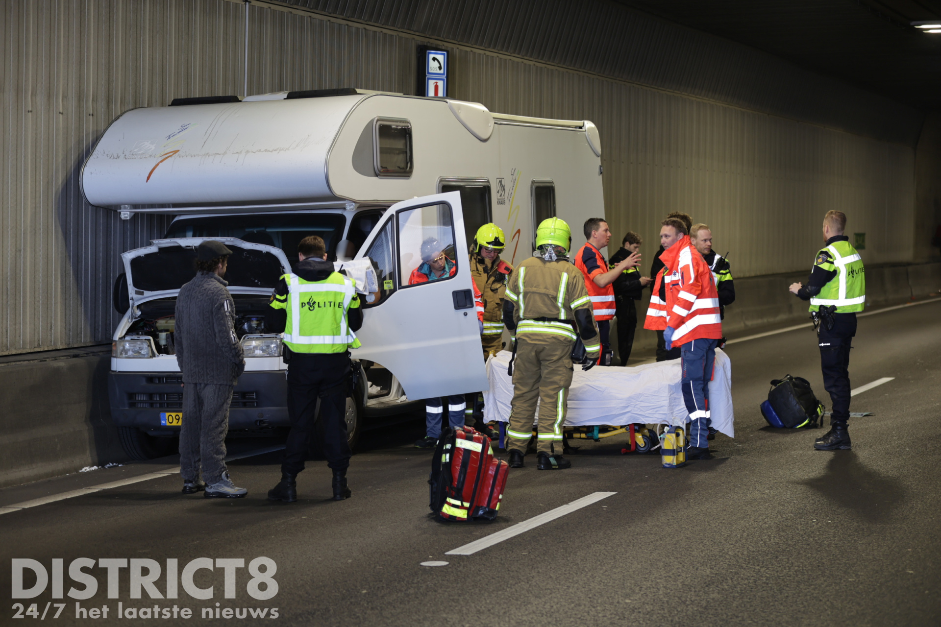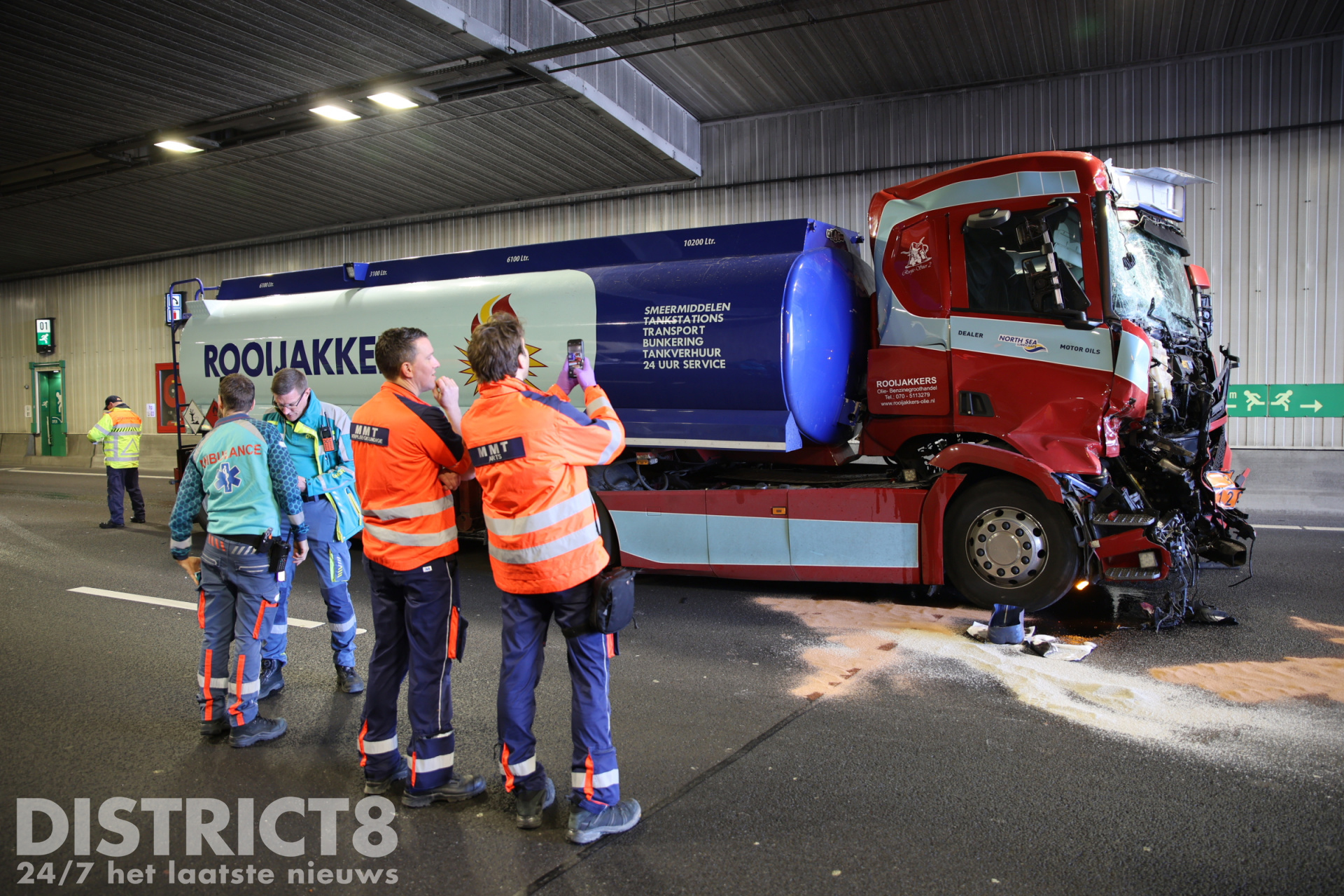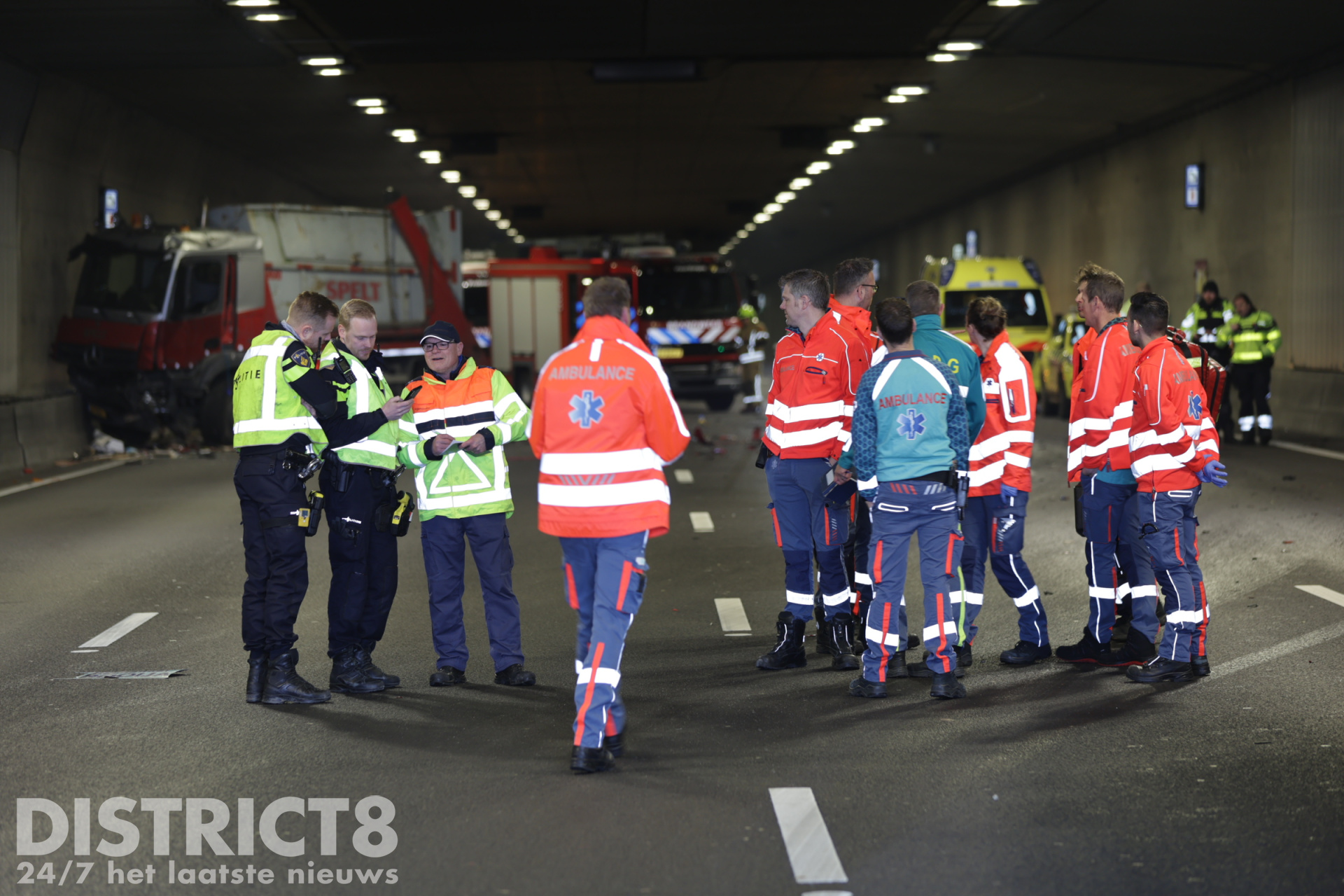 Ravage na aanrijding tussen twee vrachtwagens en een camper in Ketheltunel A4 Schipluiden