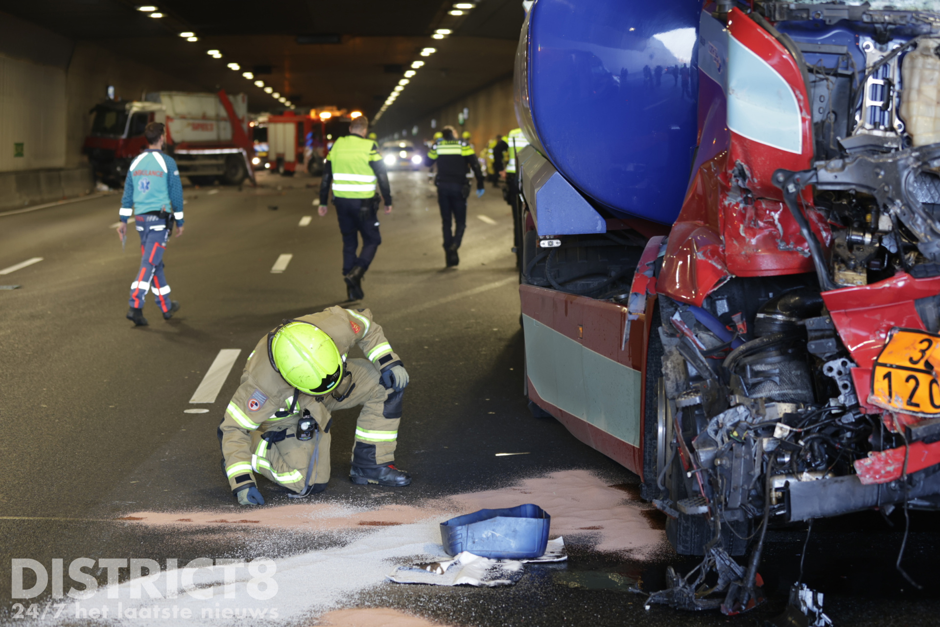 Home Delft Ravage na aanrijding tussen twee vrachtwagens en een camper in Ketheltunel A4...