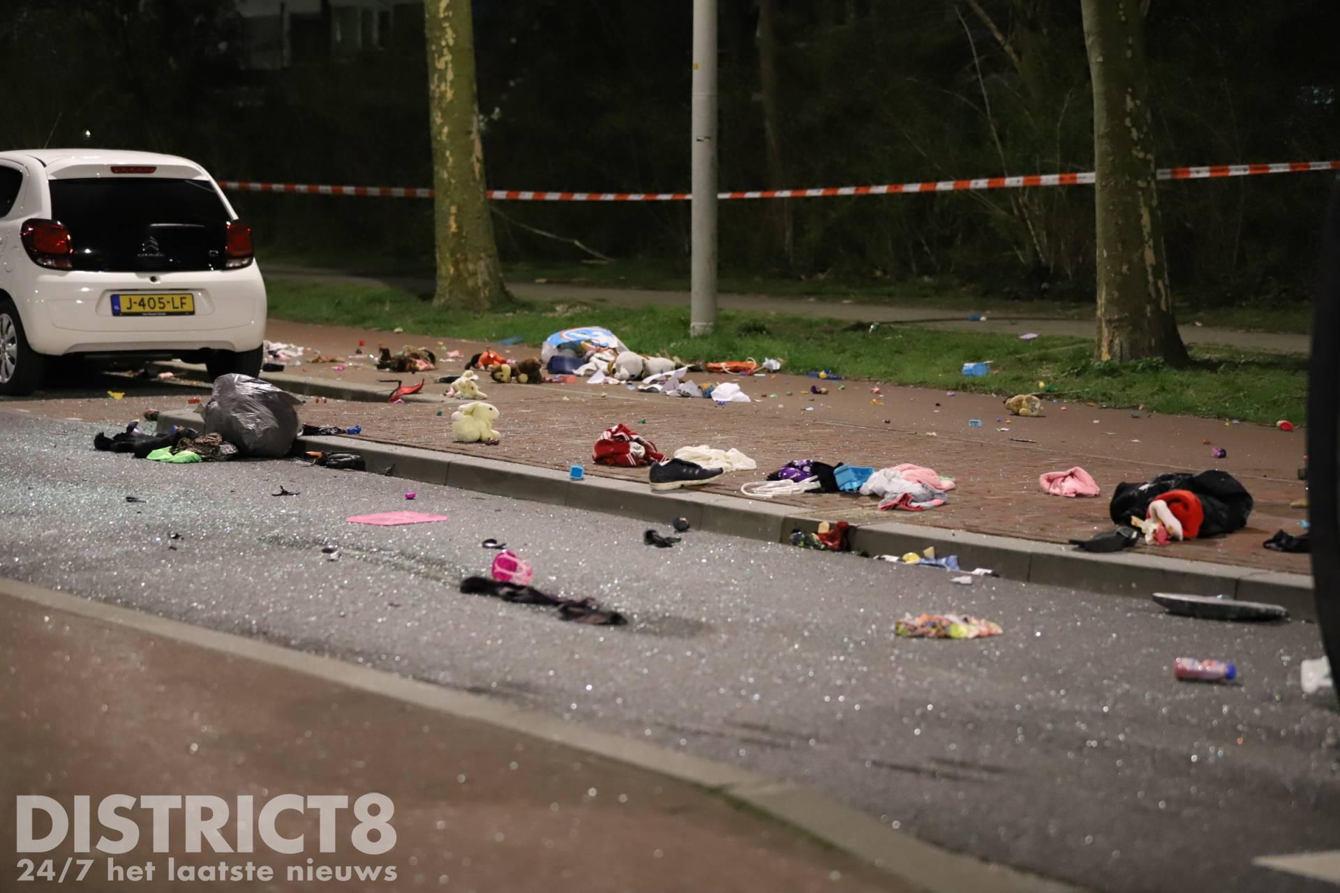 De gehele weg lag bezaait met brokstukken en vrijwel alles wat in het voertuig lag. Drie inzittende van het voertuig zijn gecontroleerd in de ambulance. Een van de personen had hier echter geen zin in, maar koos later toch ervoor om gecontroleerd te worden, deze is uiteindelijk zonder spoed (A2) vervoerd.