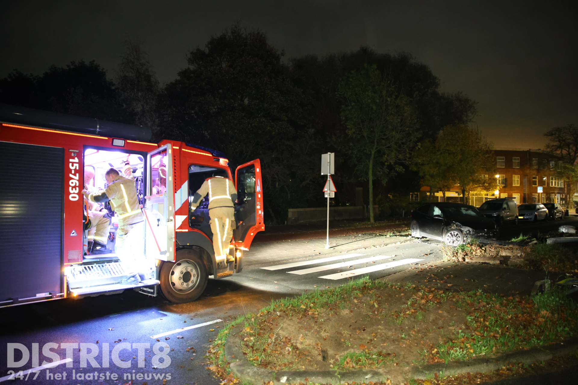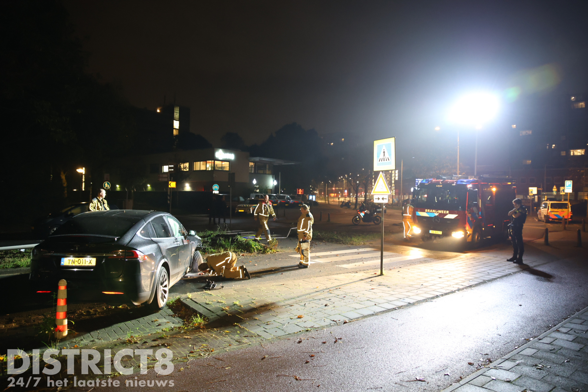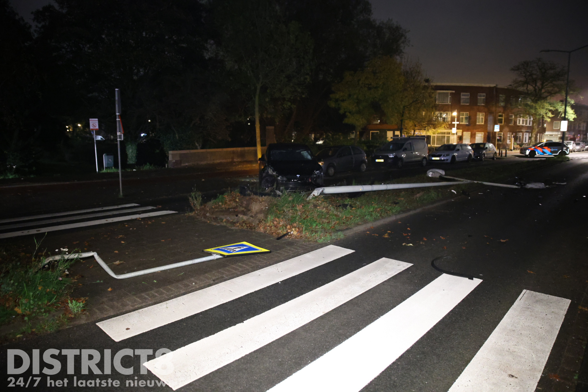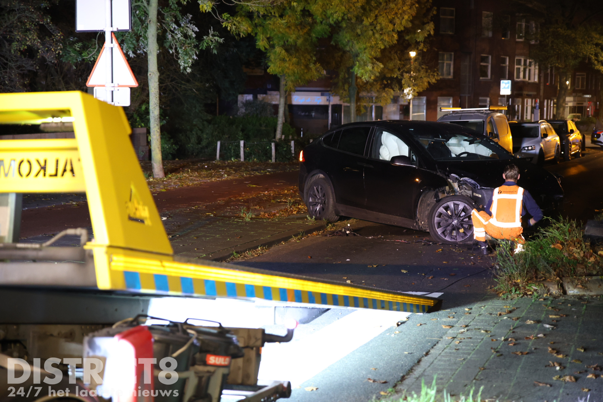 Een Tesla bleek vanaf de Neherkade richting Rijswijk van de weg te zijn geraakt. Nadat de wagen een verkeersbord en een lantaarnpaal ramde kwam deze op de tegenover gelegen rijbaan tot stilstand. De bestuurder stond inmiddels al naast de wagen toen agenten aan kwamen, hij bleek wonder boven wonder geen verwondingen te hebben. Nadat bij de bestuurder een drugs- en alcoholtest was afgenomen is hij aangehouden. Hij is lopend het bureau ingebracht voor nader onderzoek, vermoedelijk was de man tijdens het ongeval onder invloed.