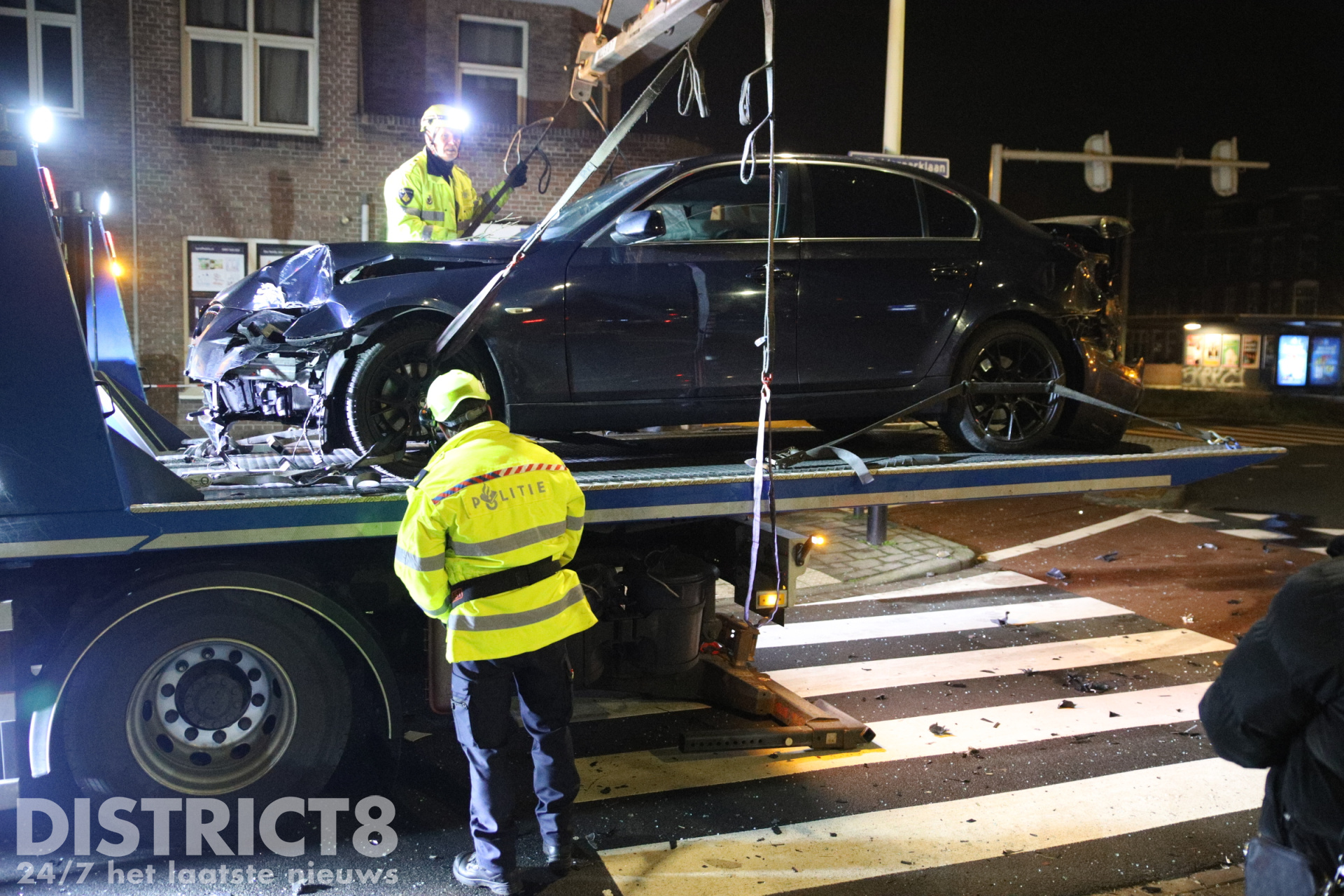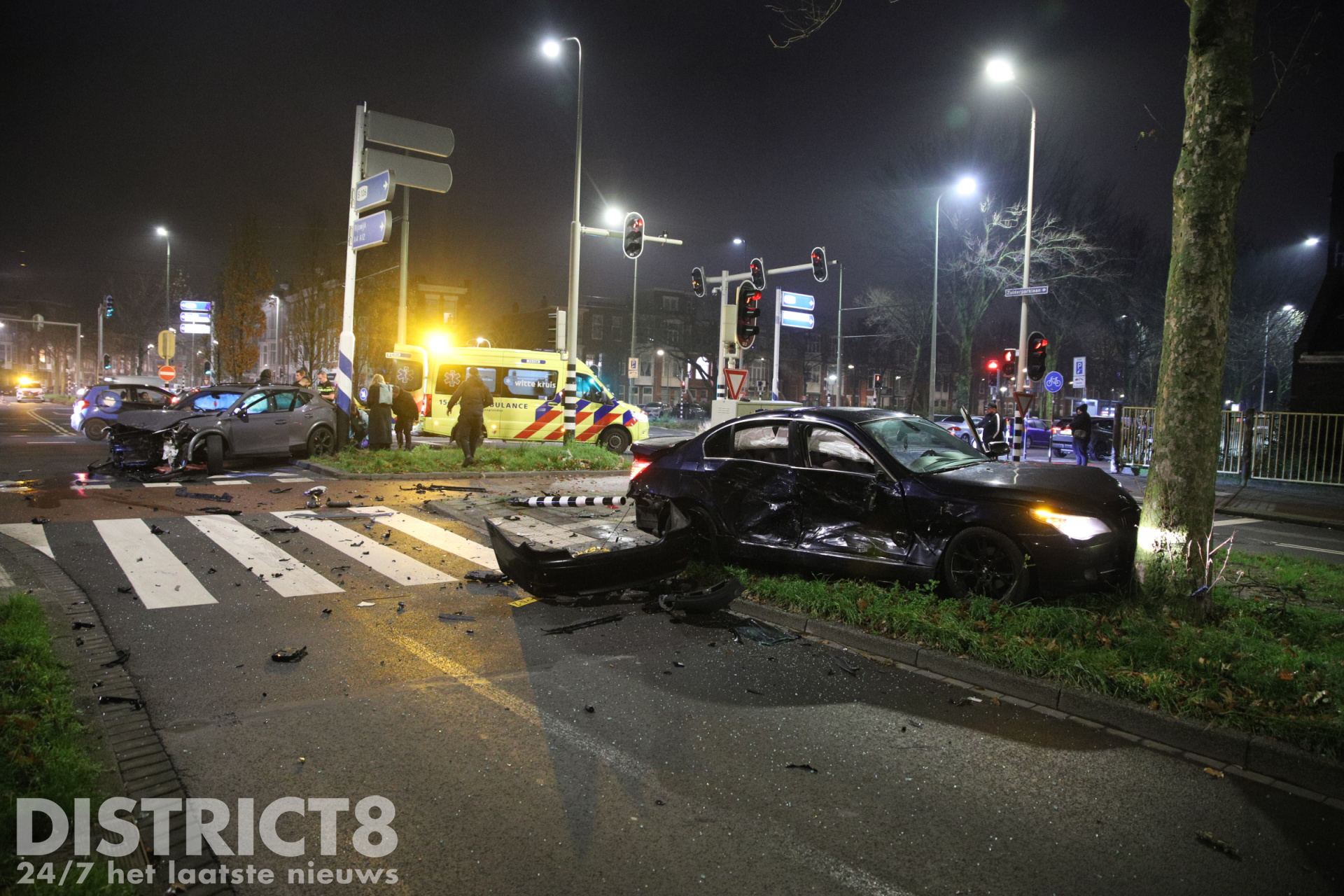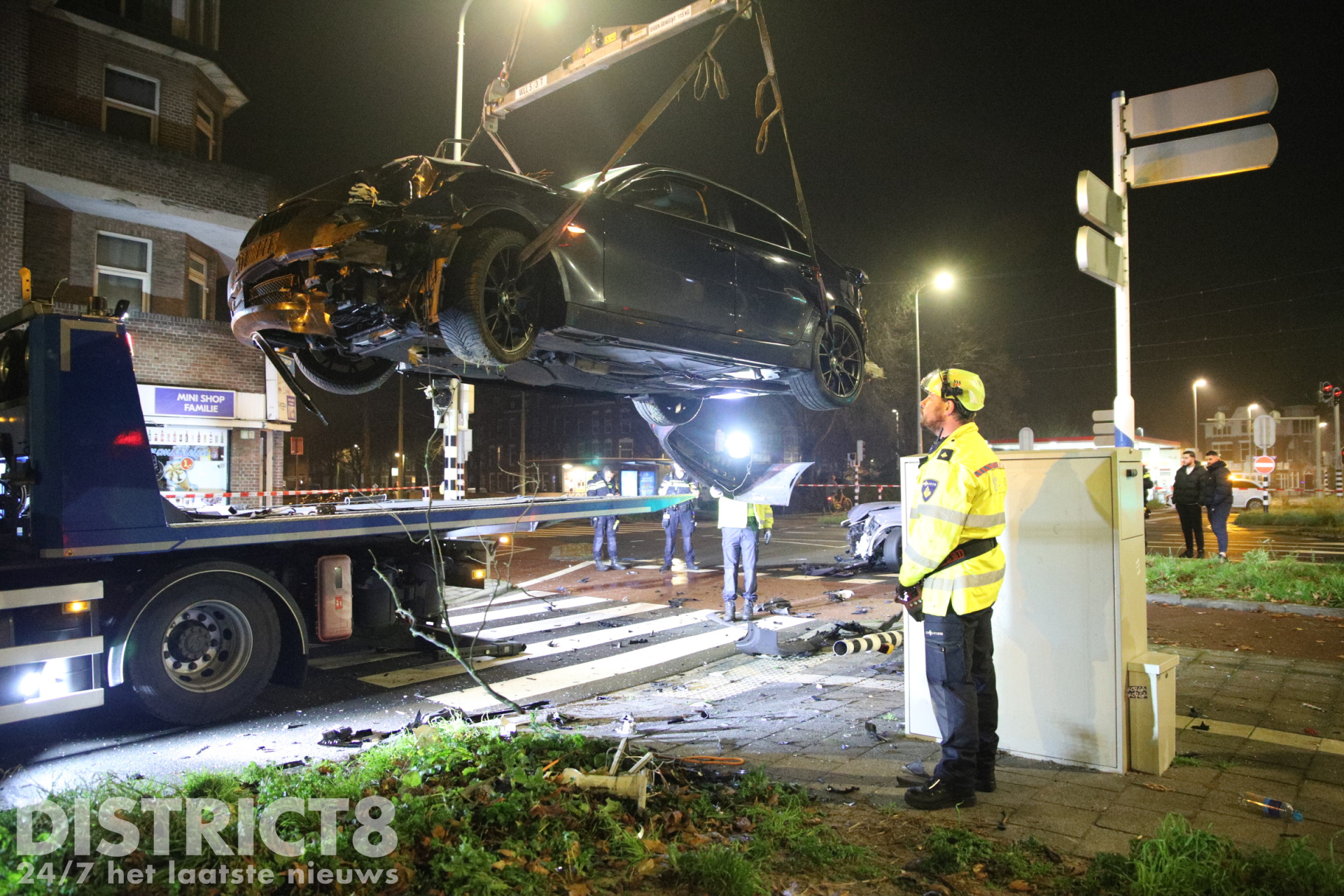De kruising is grotendeels afgesloten vanwege de brokstukken die verspreid liggen. Meerdere gewonden zijn in twee ter plaatse gekomen ambulances nagekeken.