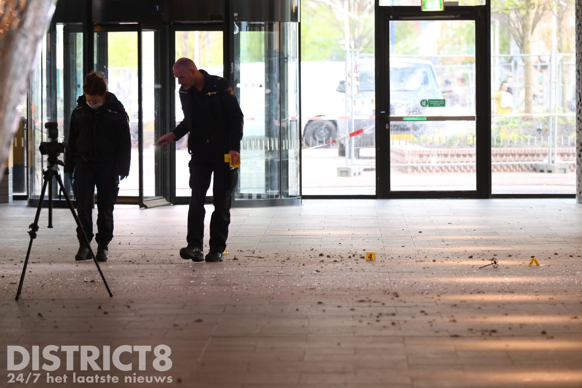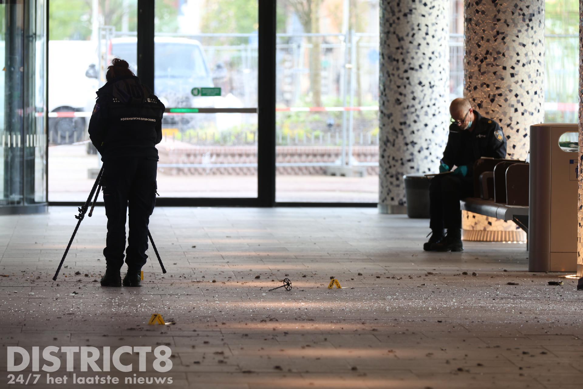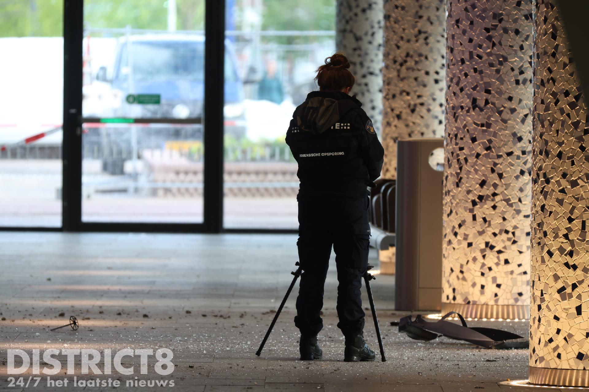 Een medewerker van Team Explosieven Veiligheid is ter plaatse om te kijken of er nog mogelijk niet-ontplofte explosieven aanwezig zijn. De Forensische Opsporing komt ter plaatse voor sporenonderzoek.
