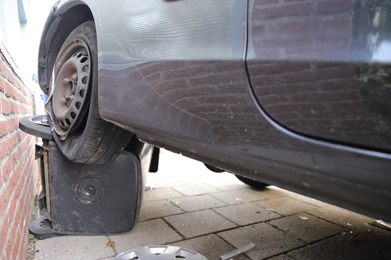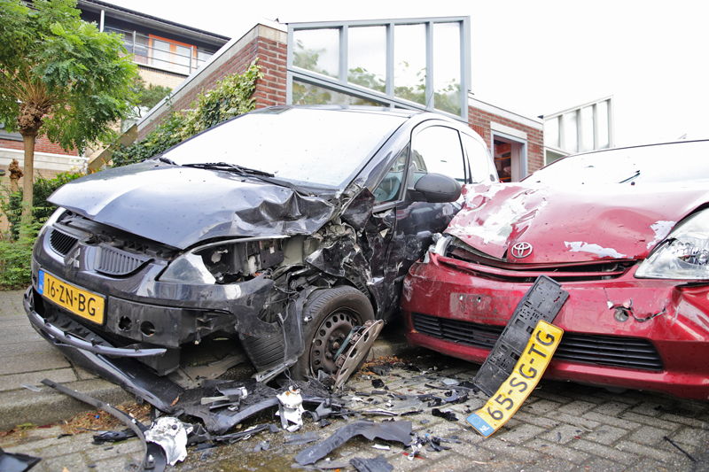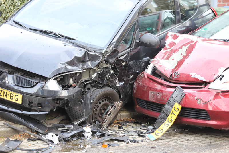 De geramde auto schoot door tegen een schuur aan, waardoor de auto van de veroorzaker weer tegen een achtergelegen auto klapte. Uiteindelijk raakte minimaal 4 auto’s beschadigd.