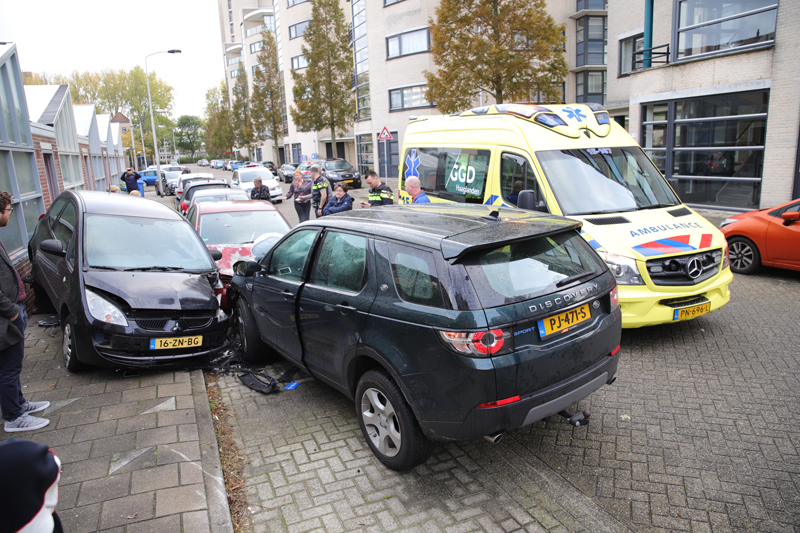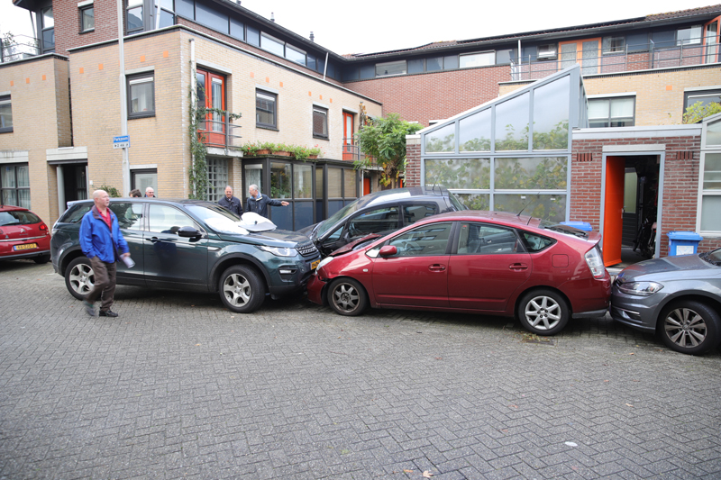 Ravage nadat auto geparkeerde auto’s ramt Parkzoom Delft