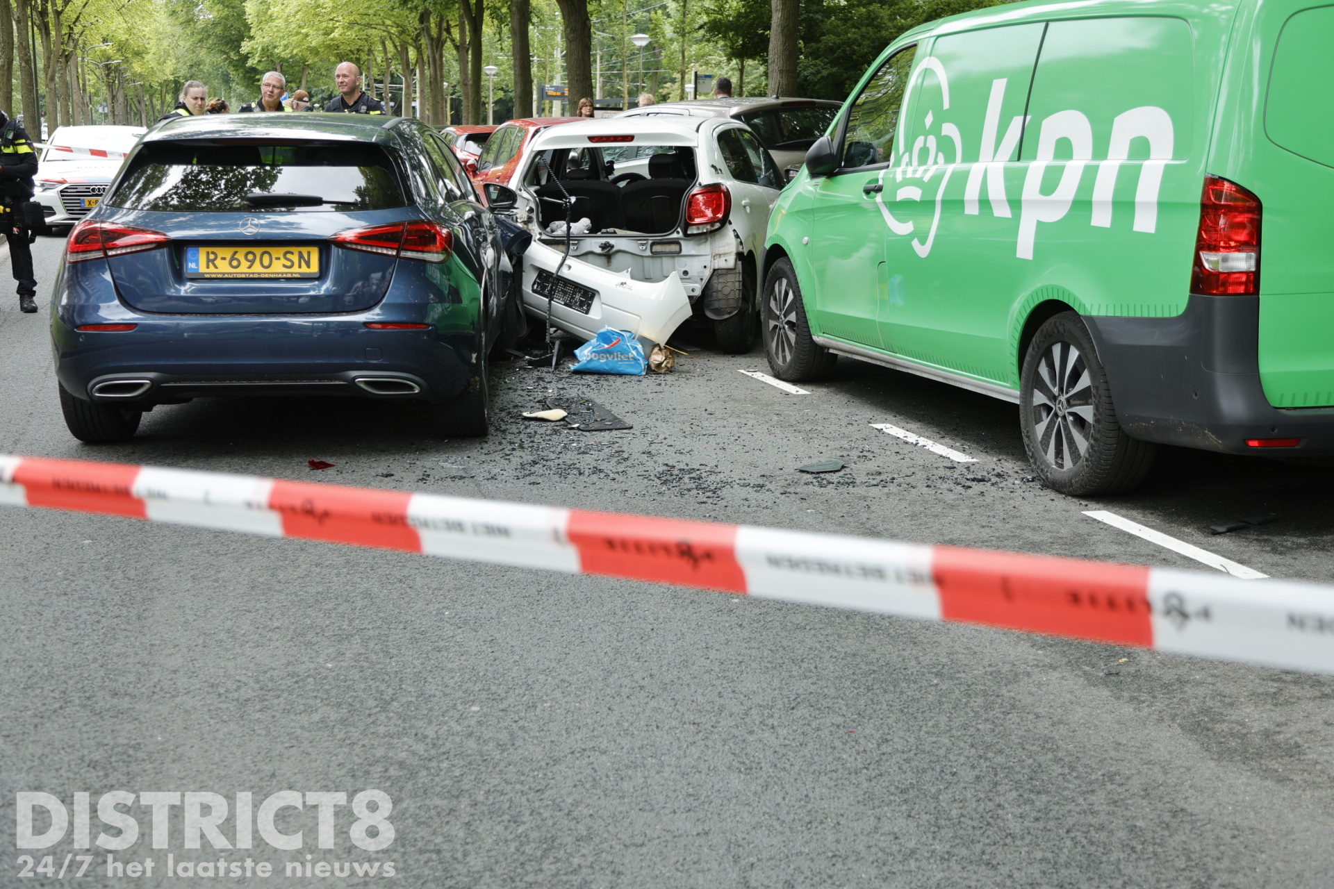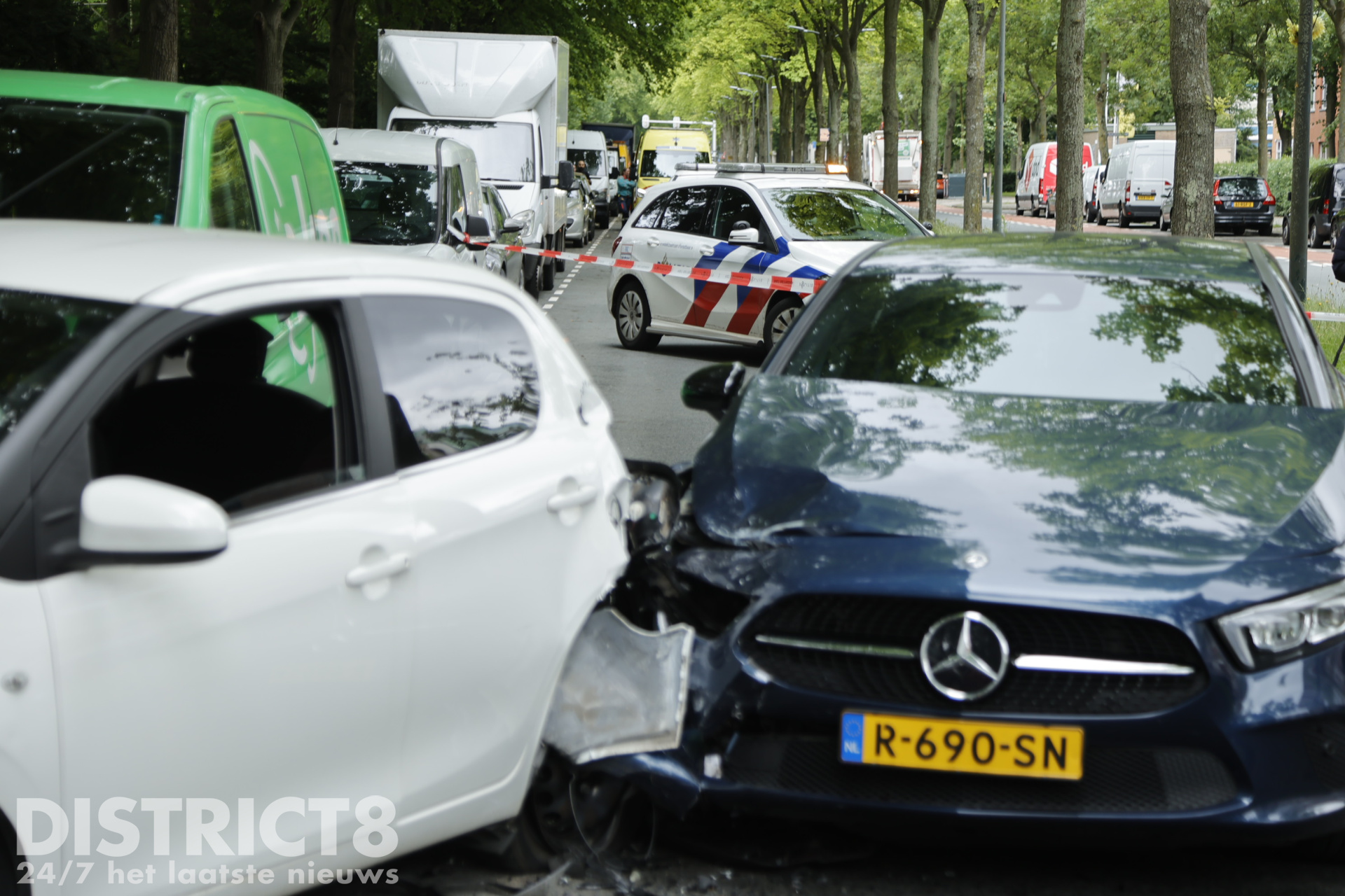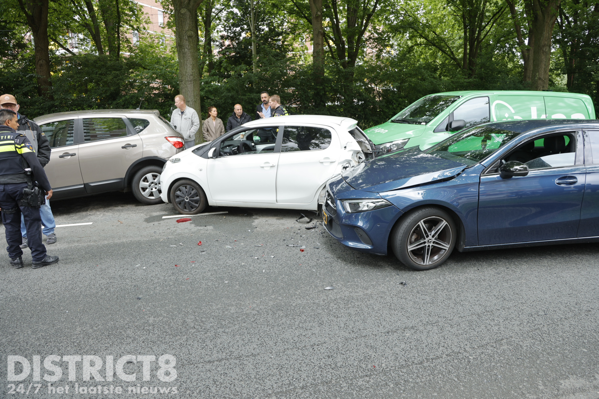 De bestuurder van de witte auto wilde fileparkeren en remde af. Een achteropkomende automobilist zag dit niet of te laat en botste met flinke snelheid achterop de witte auto. Door de aanrijding werden ook nog twee geparkeerde auto’s geraakt.