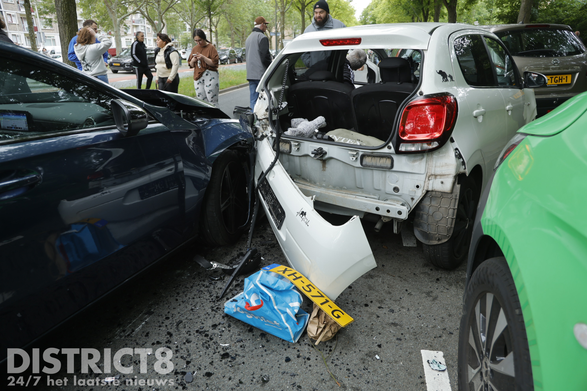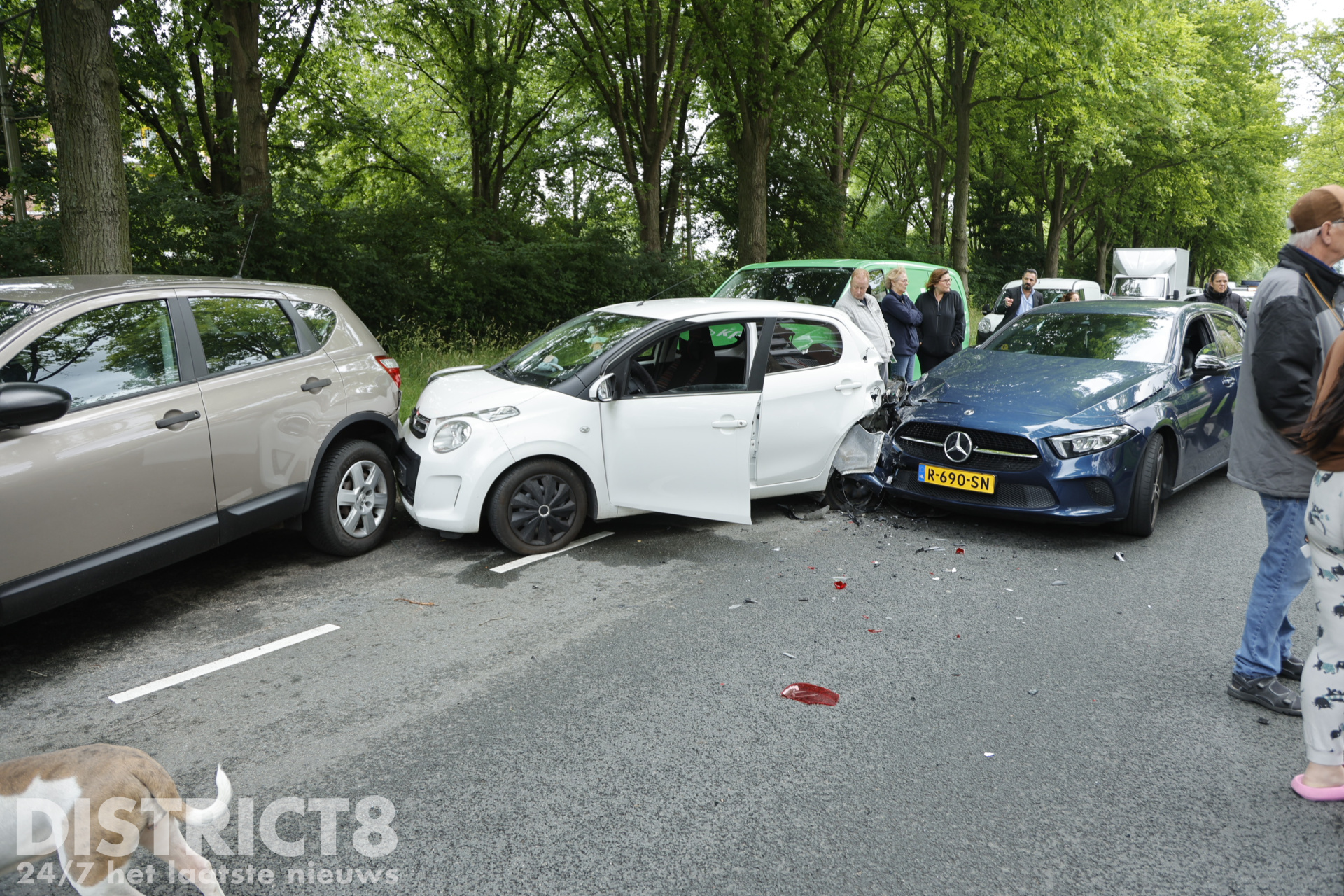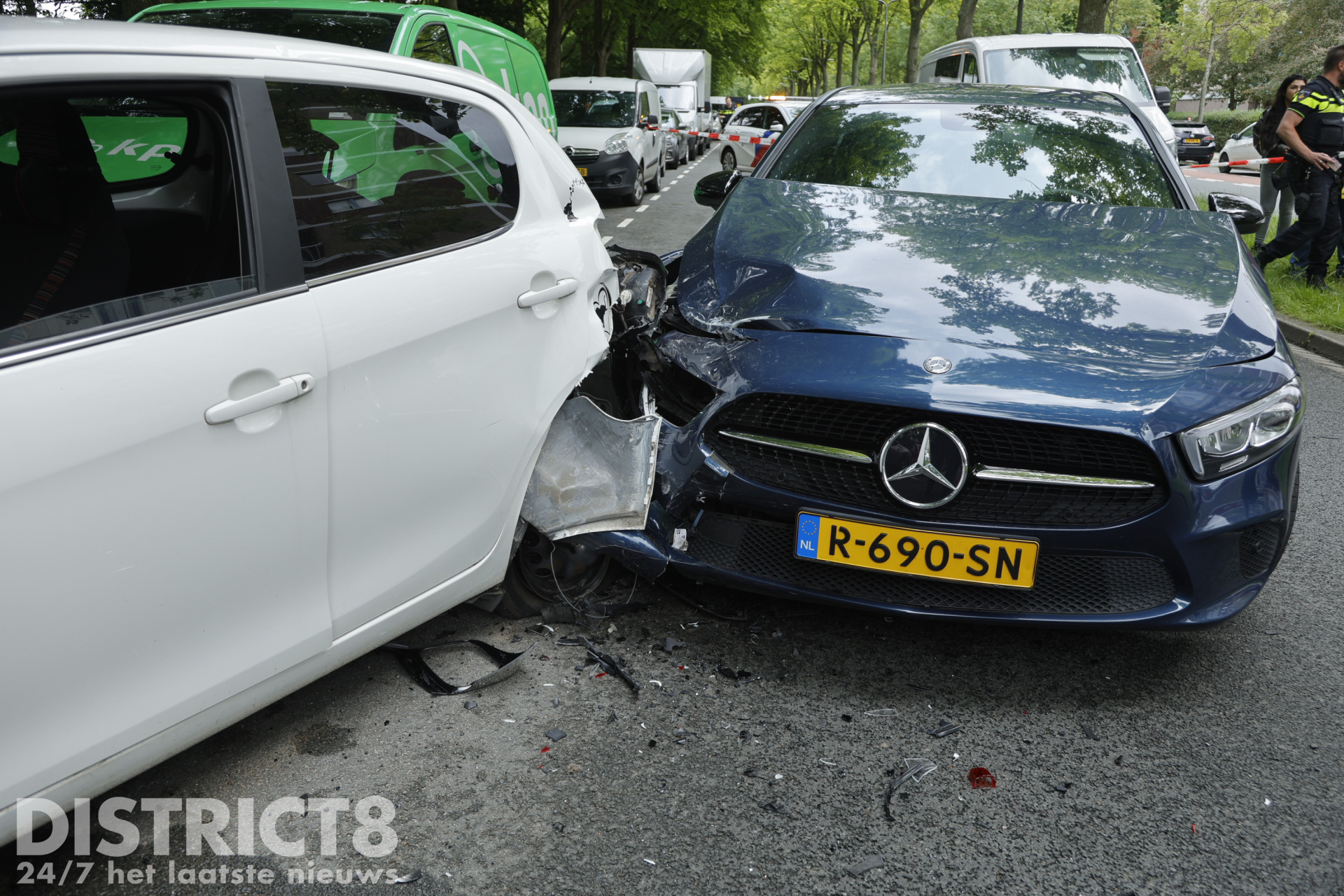 De bestuurder van de witte auto wilde fileparkeren en remde af. Een achteropkomende automobilist zag dit niet of te laat en botste met flinke snelheid achterop de witte auto. Door de aanrijding werden ook nog twee geparkeerde auto’s geraakt.