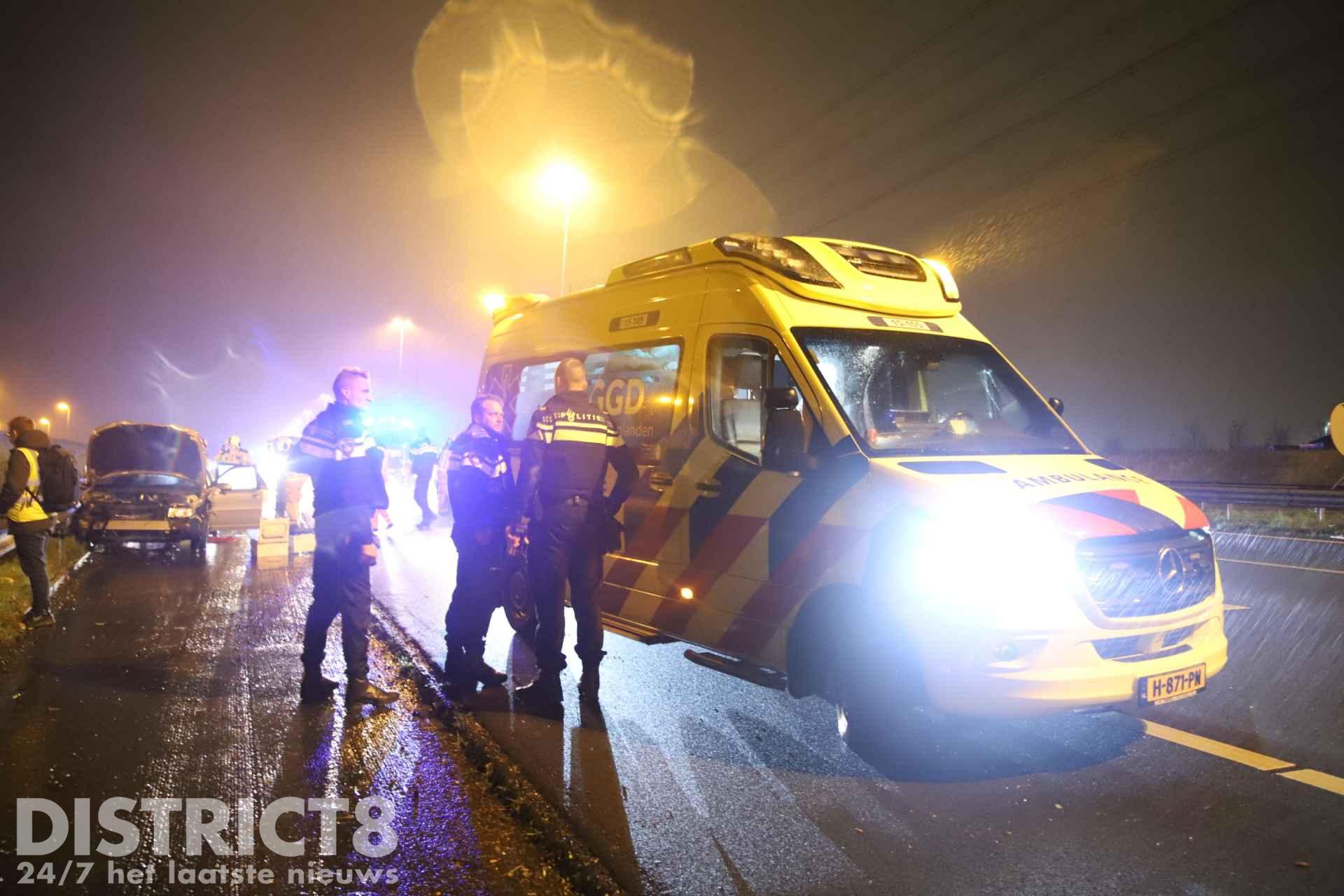 Het personeel van de ambulancedienst heeft in ieder geval een persoon nagekeken. Deze is met spoed (A1) vervoerd naar het ziekenhuis. De politie is met de ambulance meegereden omdat de bestuurder mogelijk onder invloed was van alcohol of drugs. Dit zal met een bloedtest moeten worden uitgesloten. De toerit naar de snelweg is afgesloten.