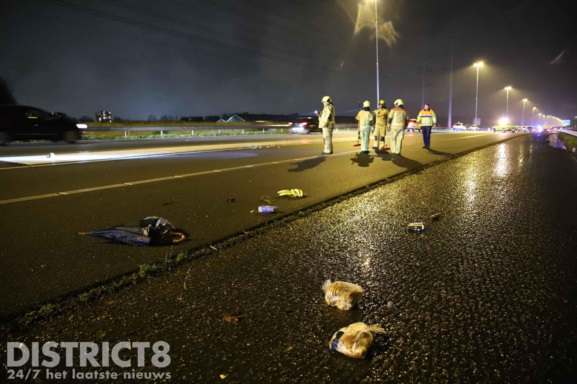 Schipluiden – Na een aanrijding op de snelweg A4 bij Schipluiden is op Kerstavond een flinke ravage ontstaan.