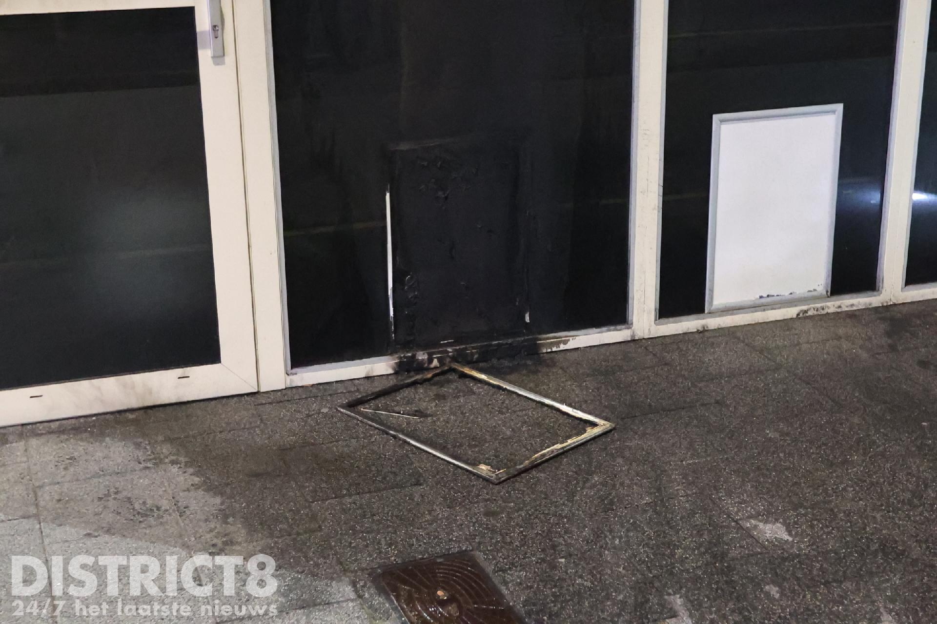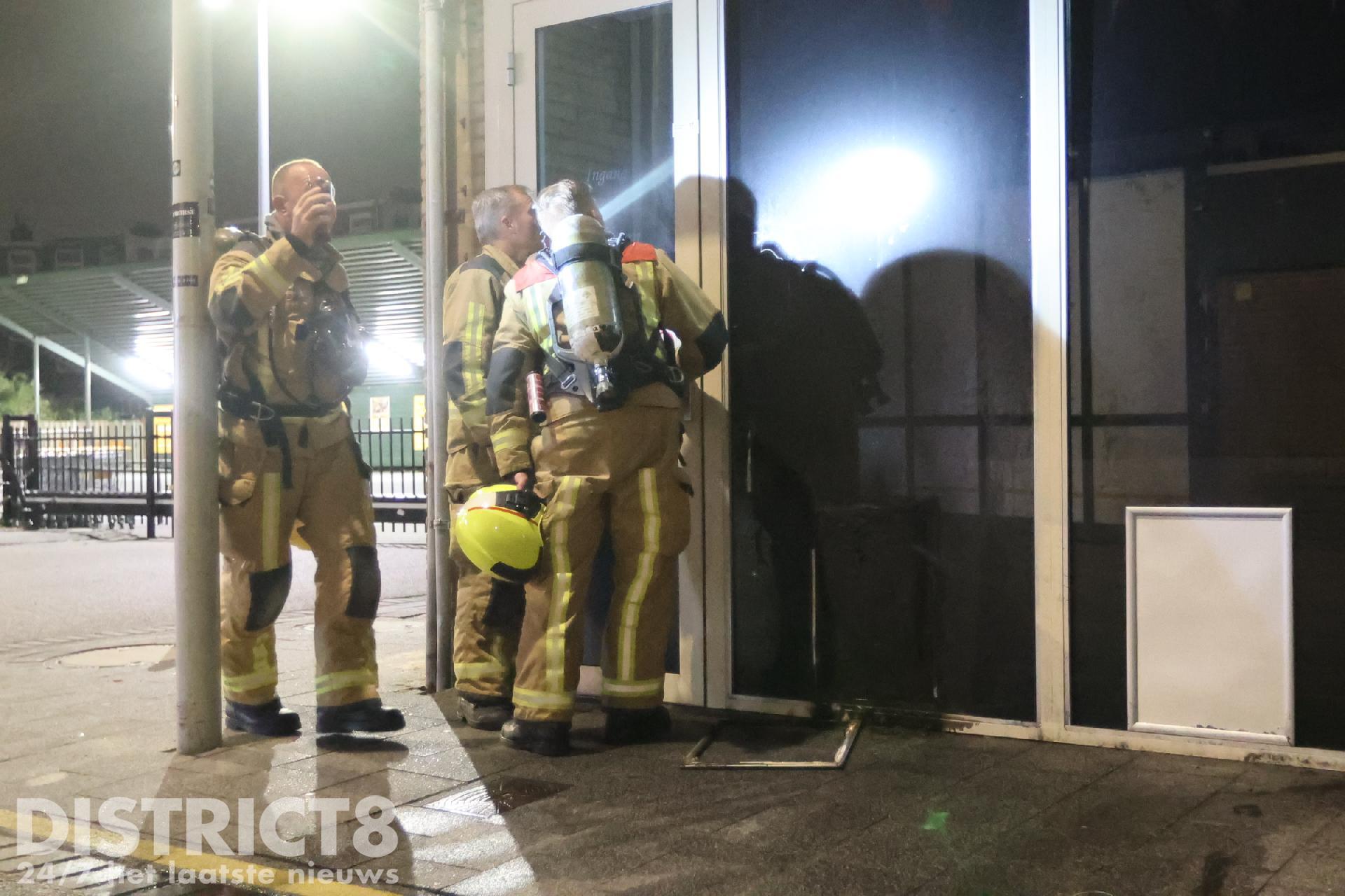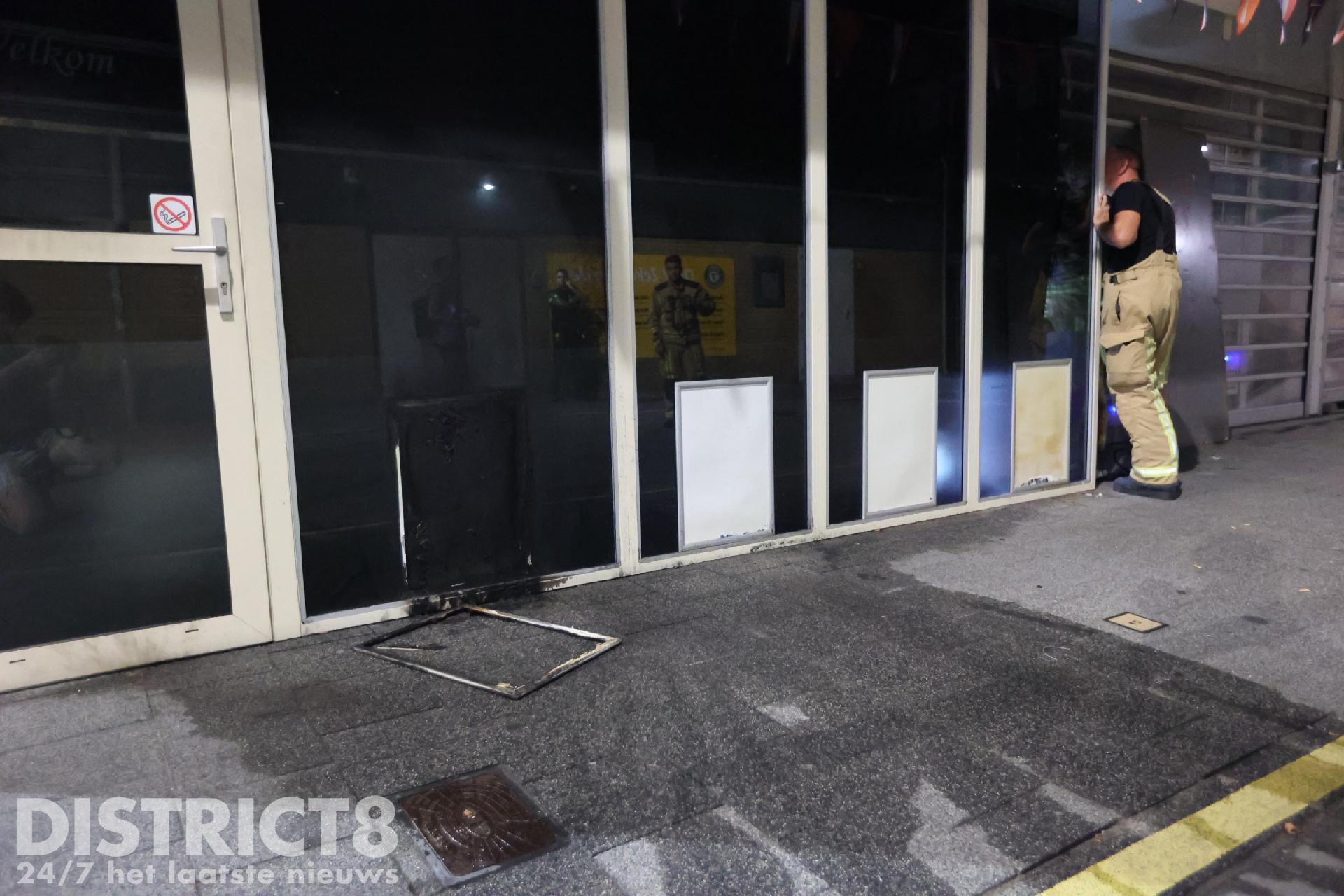 De brandweerlieden troffen hier een reclamebord aan die in brand was gestoken. Na een snelle bluspoging was de brand onder controle. Een deur is opengebroken door de brandweer om te ventileren en een nacontrole uit te voeren.