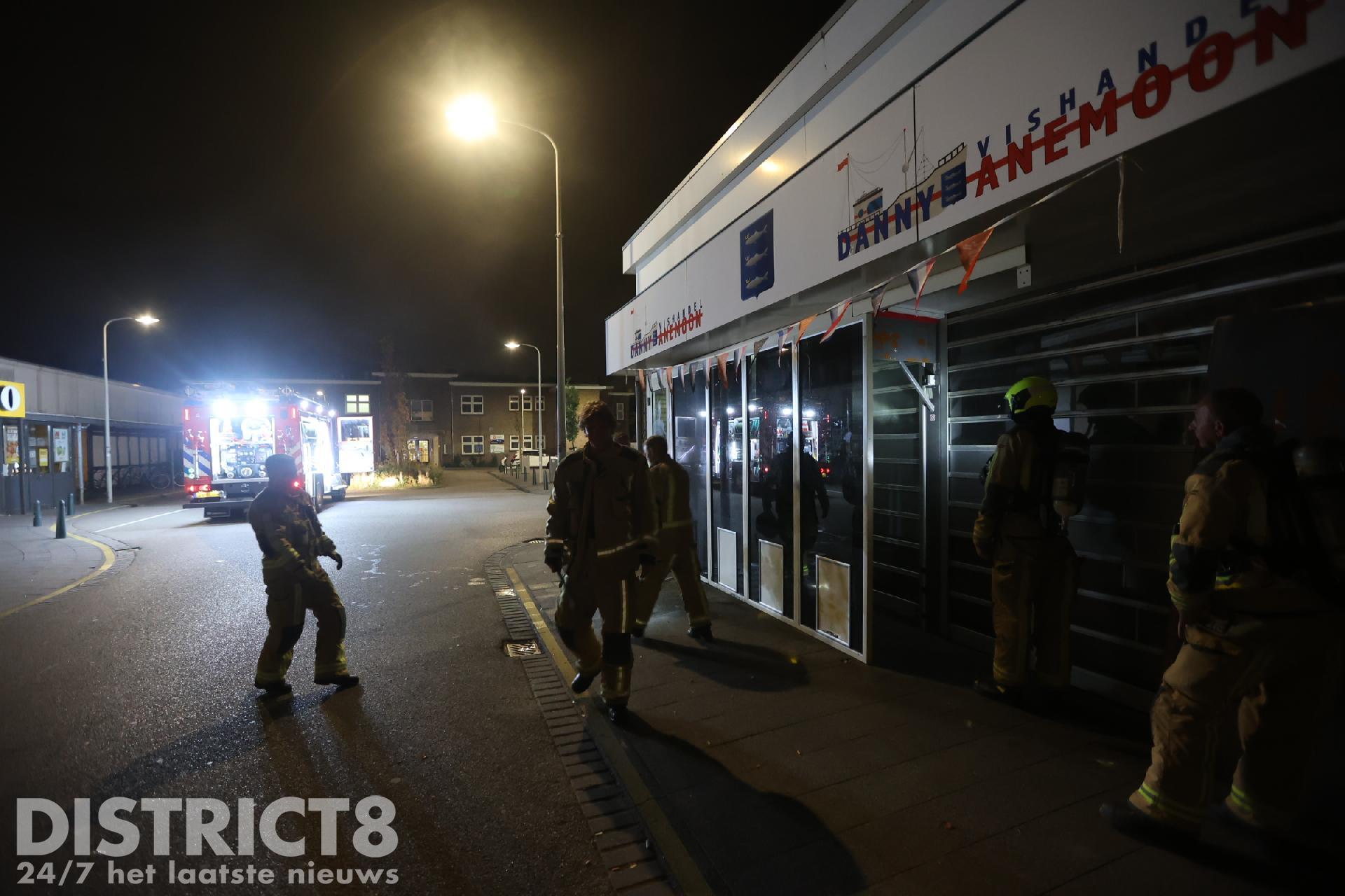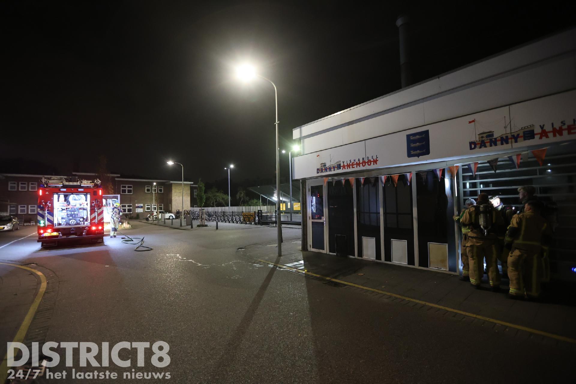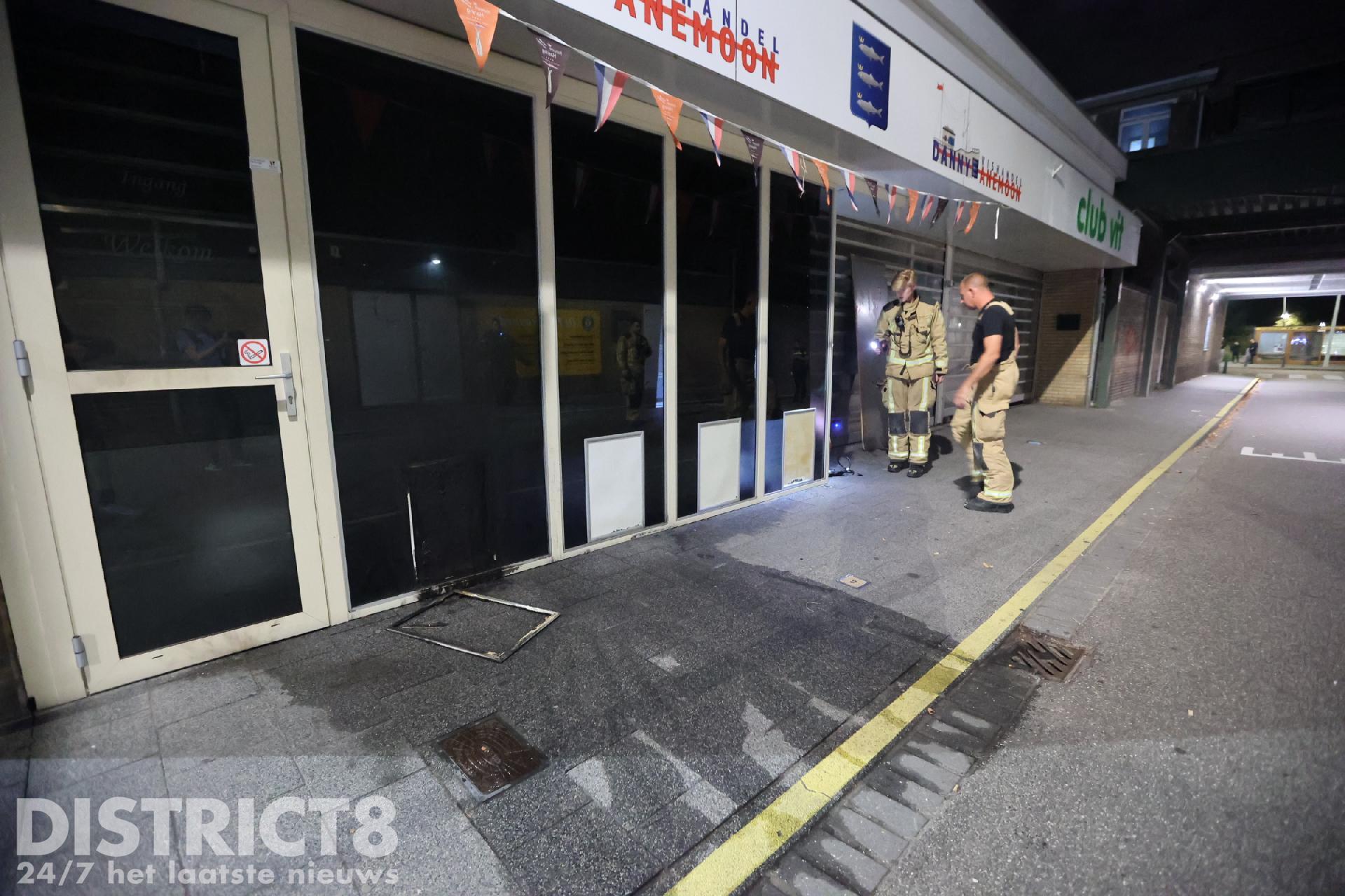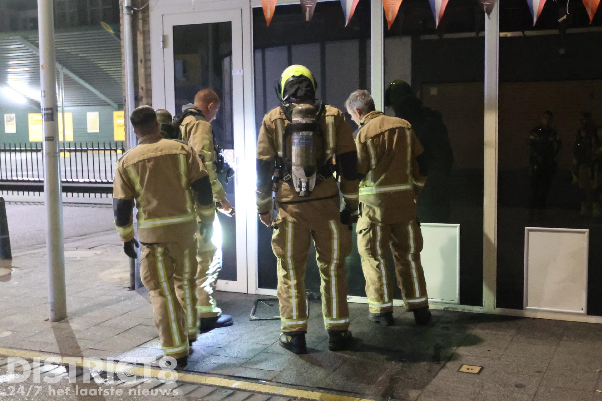 De brandweerlieden troffen hier een reclamebord aan die in brand was gestoken. Na een snelle bluspoging was de brand onder controle. Een deur is opengebroken door de brandweer om te ventileren en een nacontrole uit te voeren.