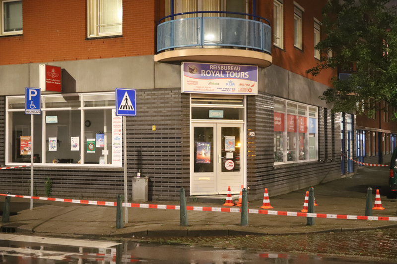 Den Haag – In de nacht van donderdag 9 op vrijdag 10 juli is reisbureau ‘Royal Tours’ aan de Hoefkade in Den Haag beschoten. Omstreeks 01:00 kwam de melding binnen op de meldkamer. Agenten die ter plaatse kwamen troffen 6 kogelinslagen aan in de voordeur van het reisbureau.