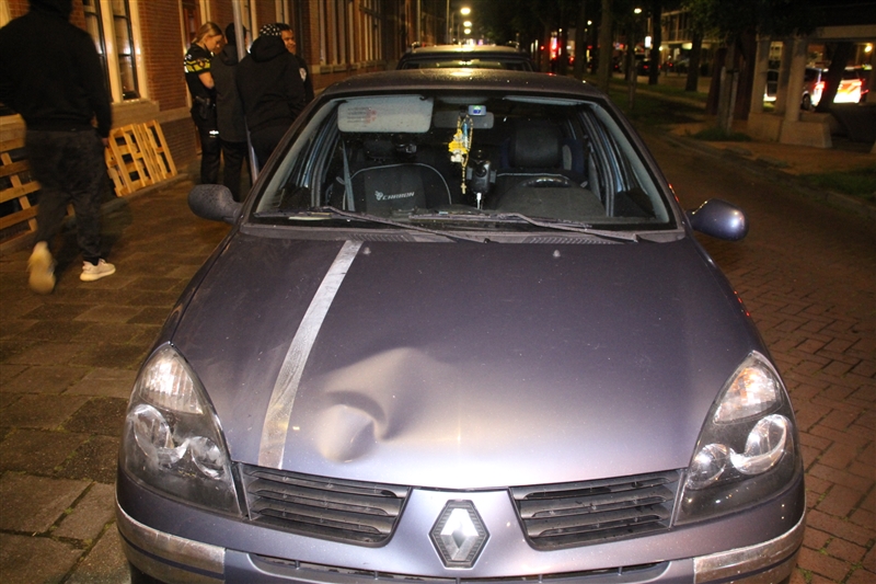 Minstens één auto liep, door de actie van de drie, flinke schade op. Naast een grote deuk heeft de auto ook een kapotgeslagen zijspiegel van de drie ‘cadeau’ gekregen.