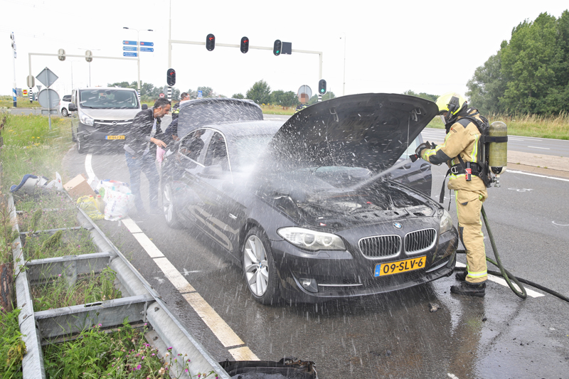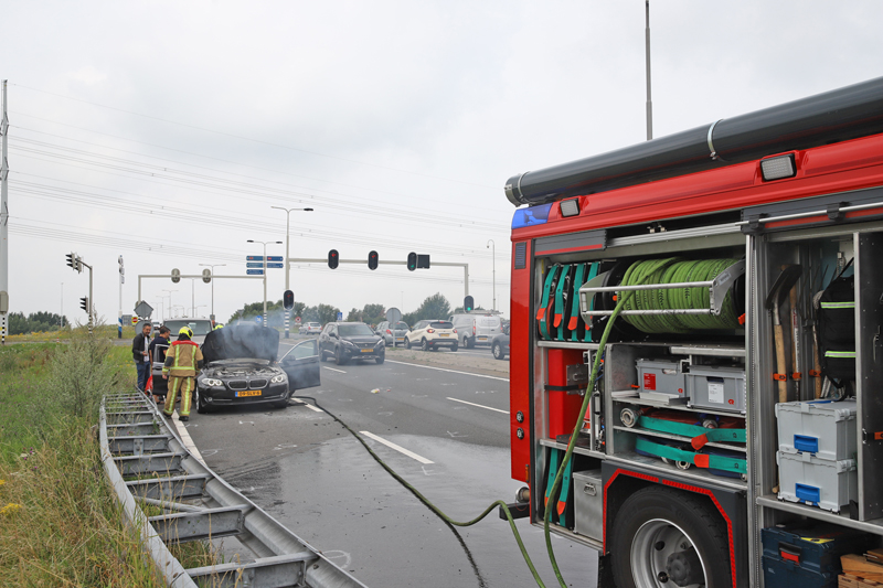 Ter plaatse bleek er onder de motorkap een klein brandje te woedde, de brandweer is direct begonnen met bluswerkzaamheden en had het brandje snel onder controle.