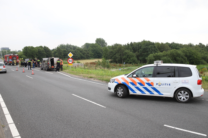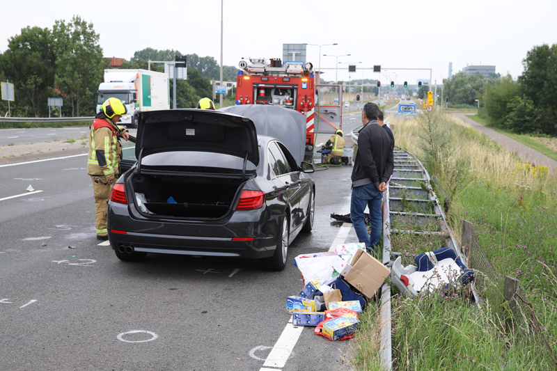 De brandweer heeft enig sloopwerk aan de auto moeten verrichten. De auto heeft door de brand in het motorcompartiment flinke schade opgelopen en moet afgesleept worden.