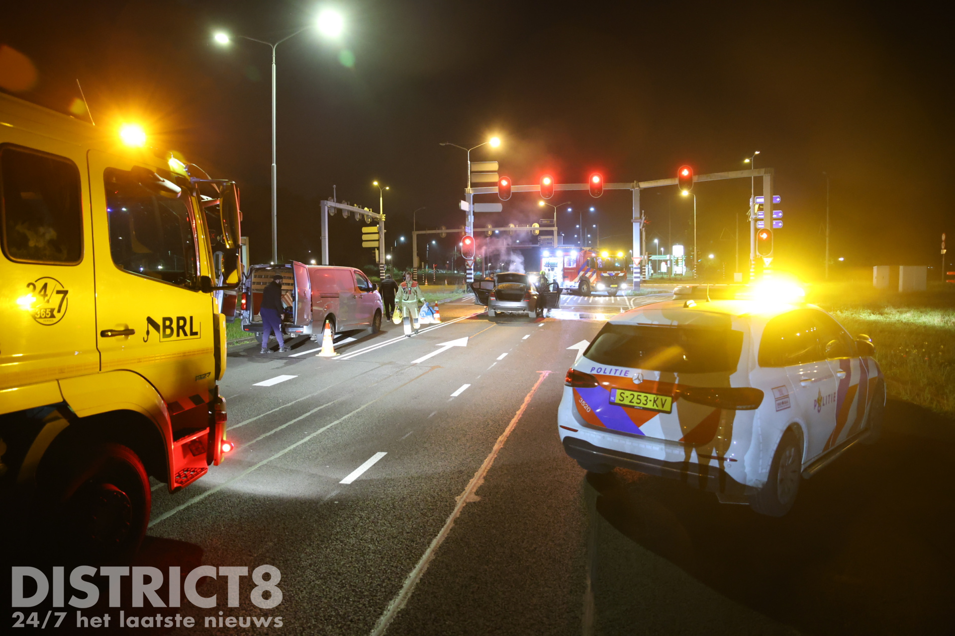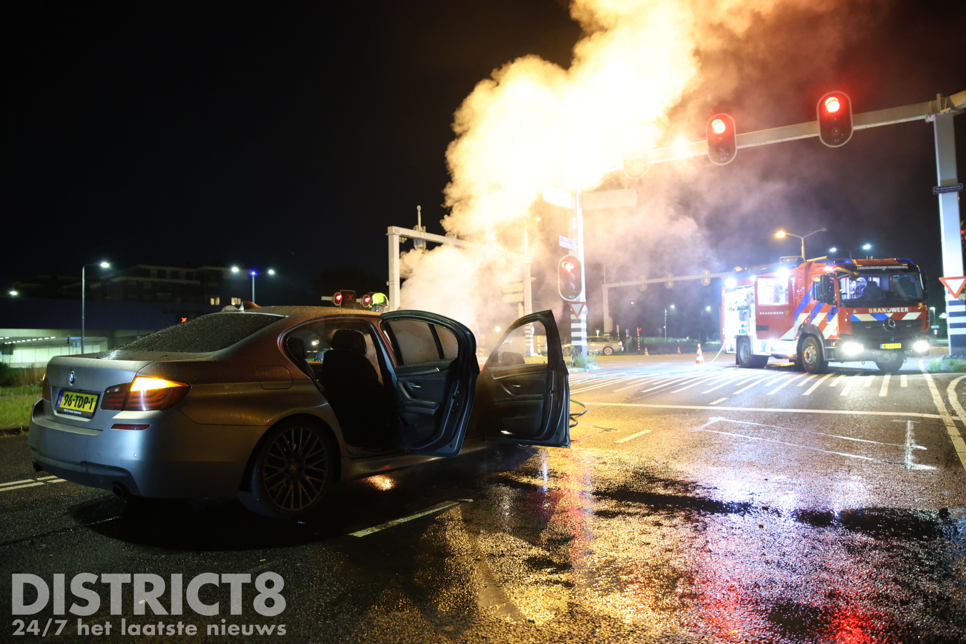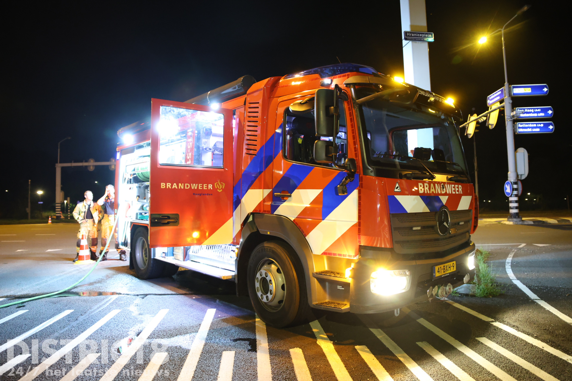 Rijdende auto vliegt in brand voor stoplichten Prins Bernhardlaan Voorburg