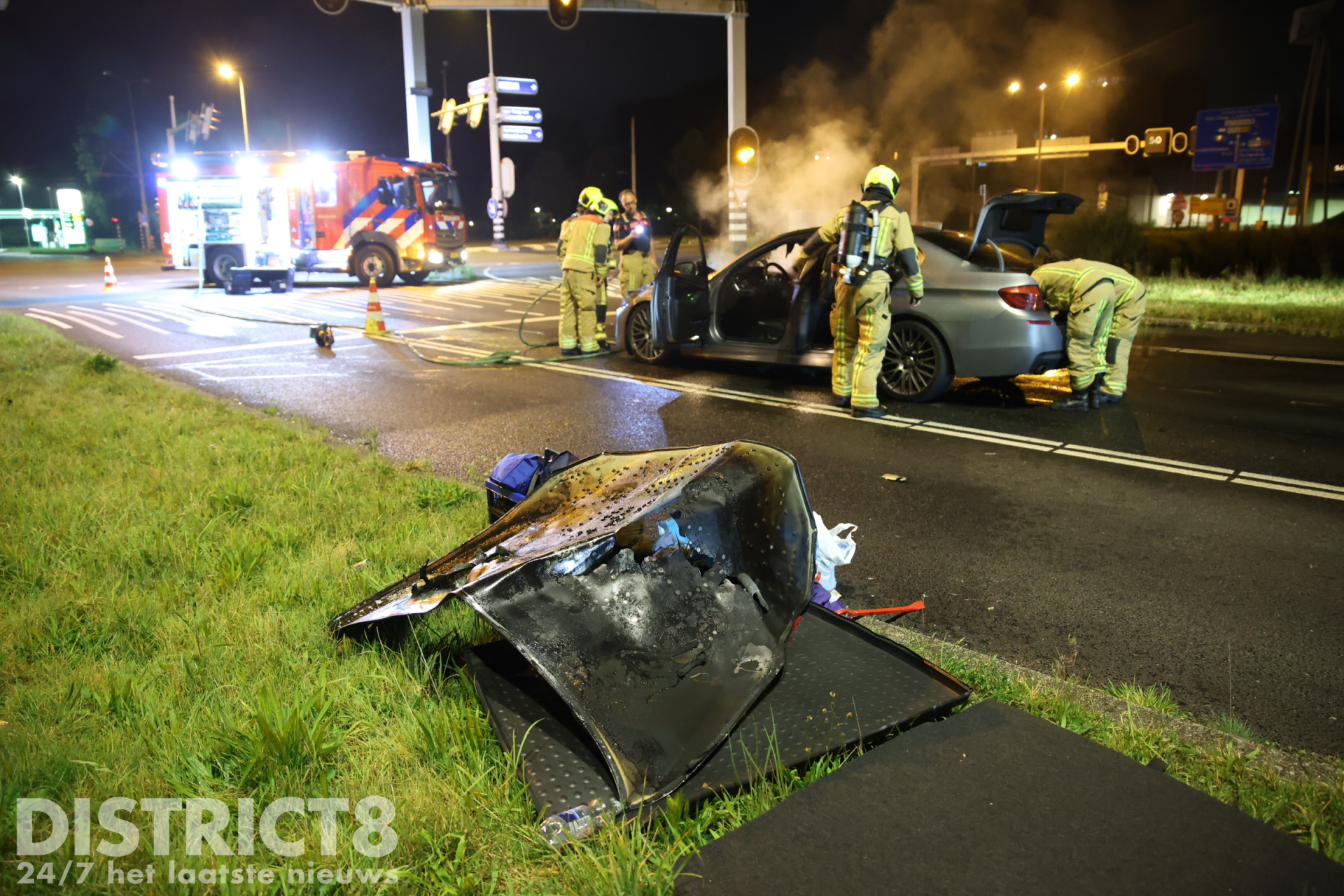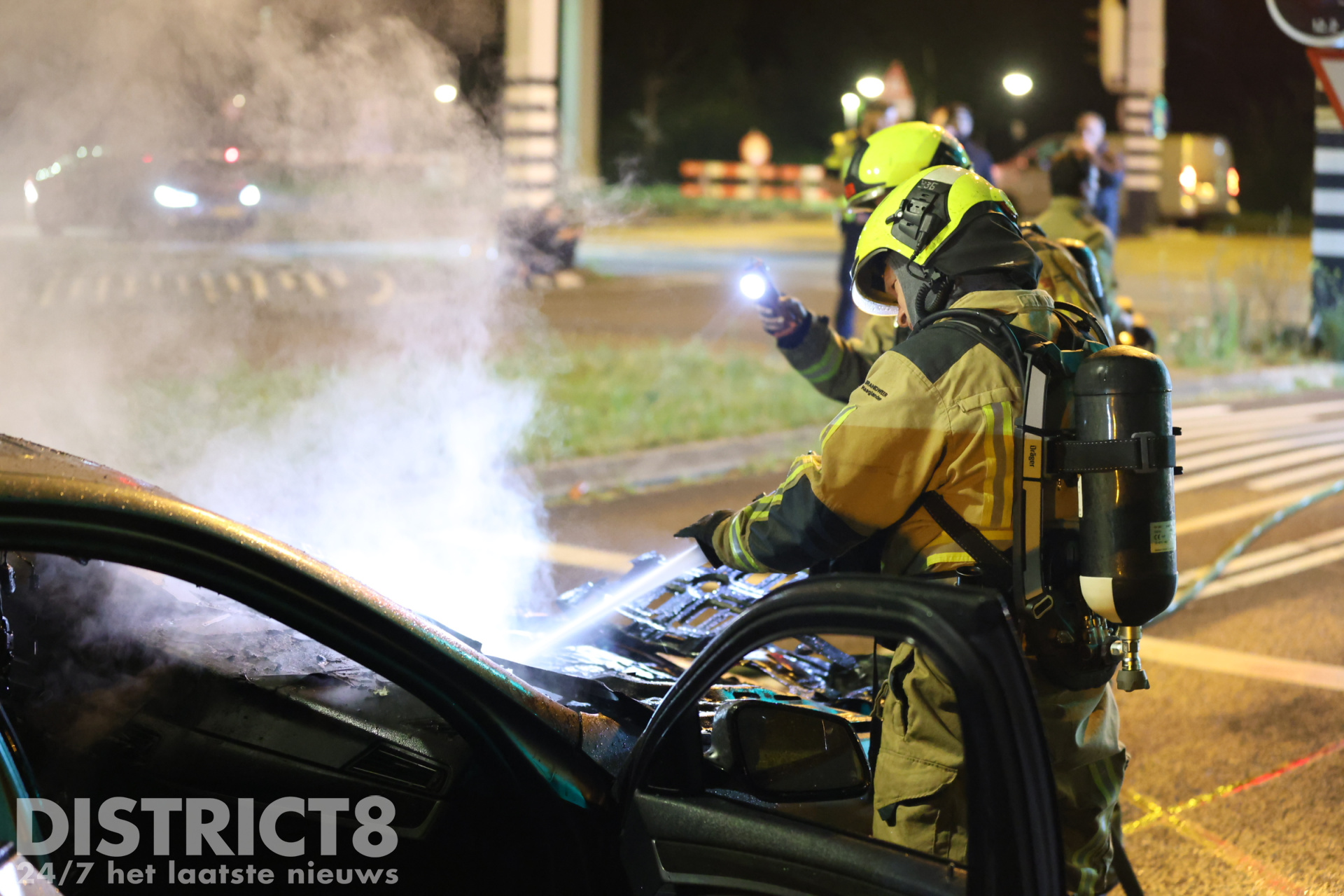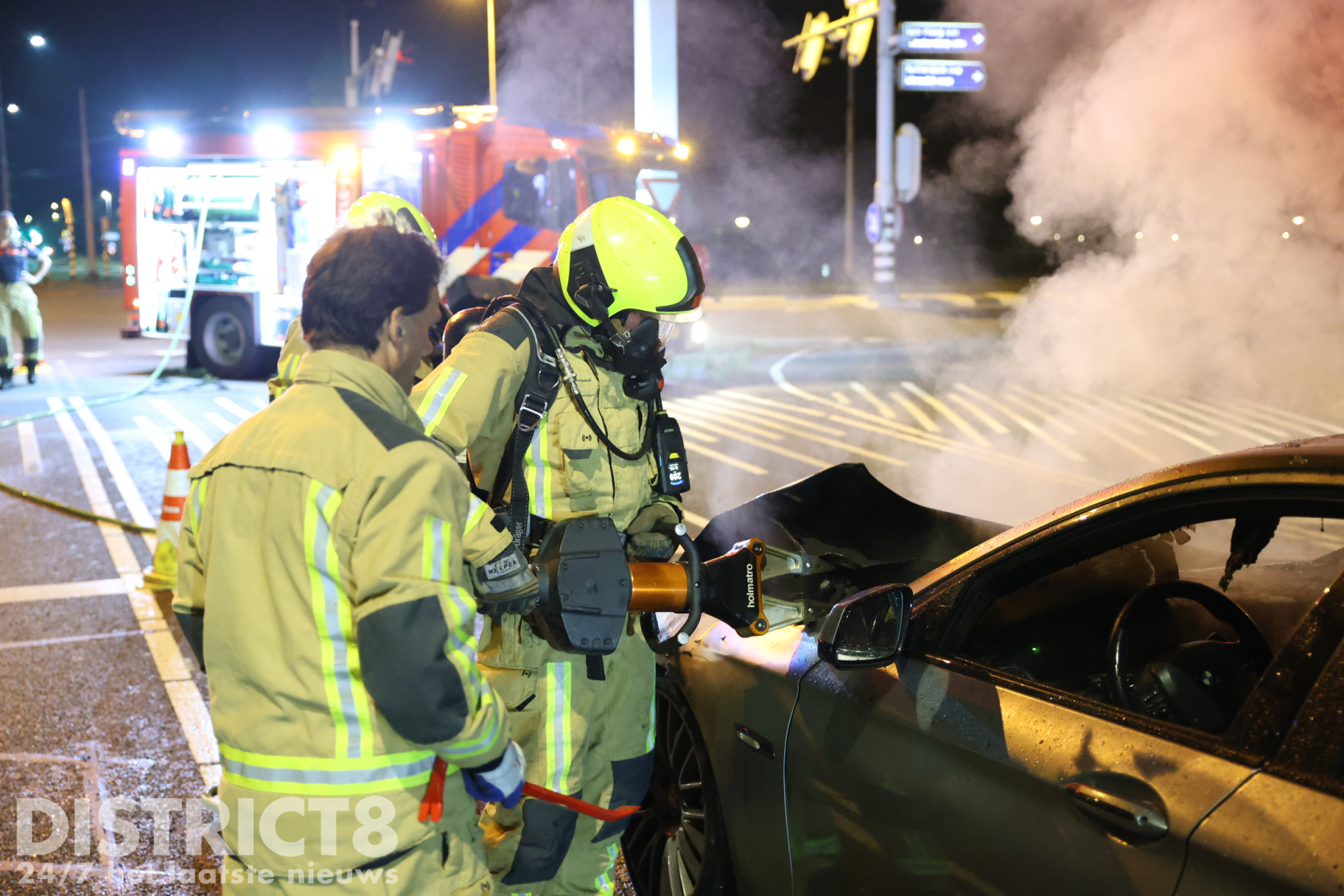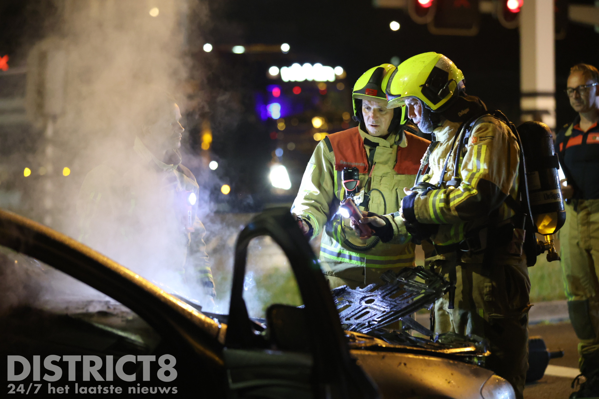 Rijdende auto vliegt in brand voor stoplichten Prins Bernhardlaan Voorburg