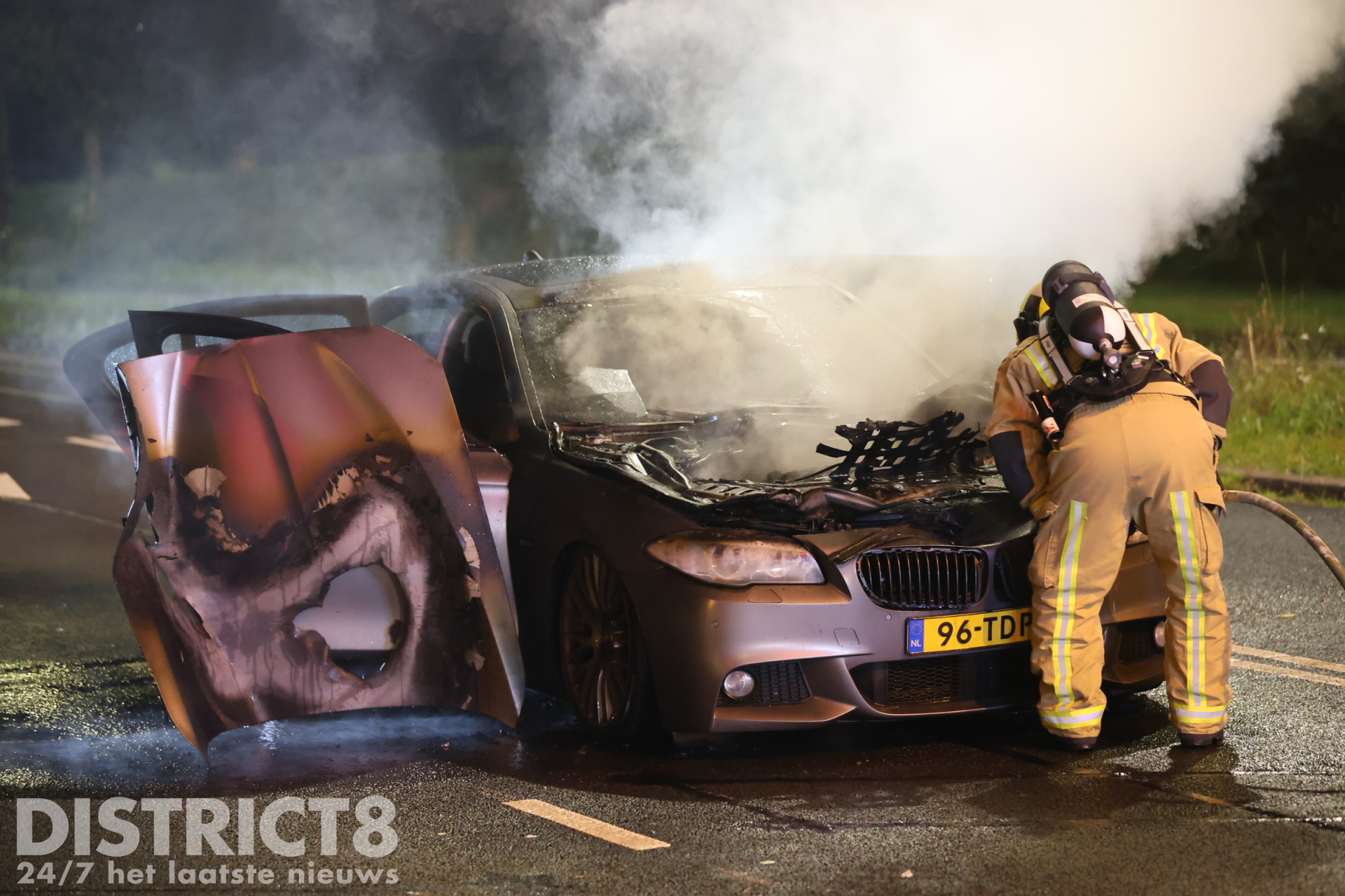 De brandweer heeft enkele spullen uit de auto weten te halen. De Prins Bernhardlaan is afgesloten richting de N14, ingesloten automobilisten moesten omkeren en een andere route zoeken.
