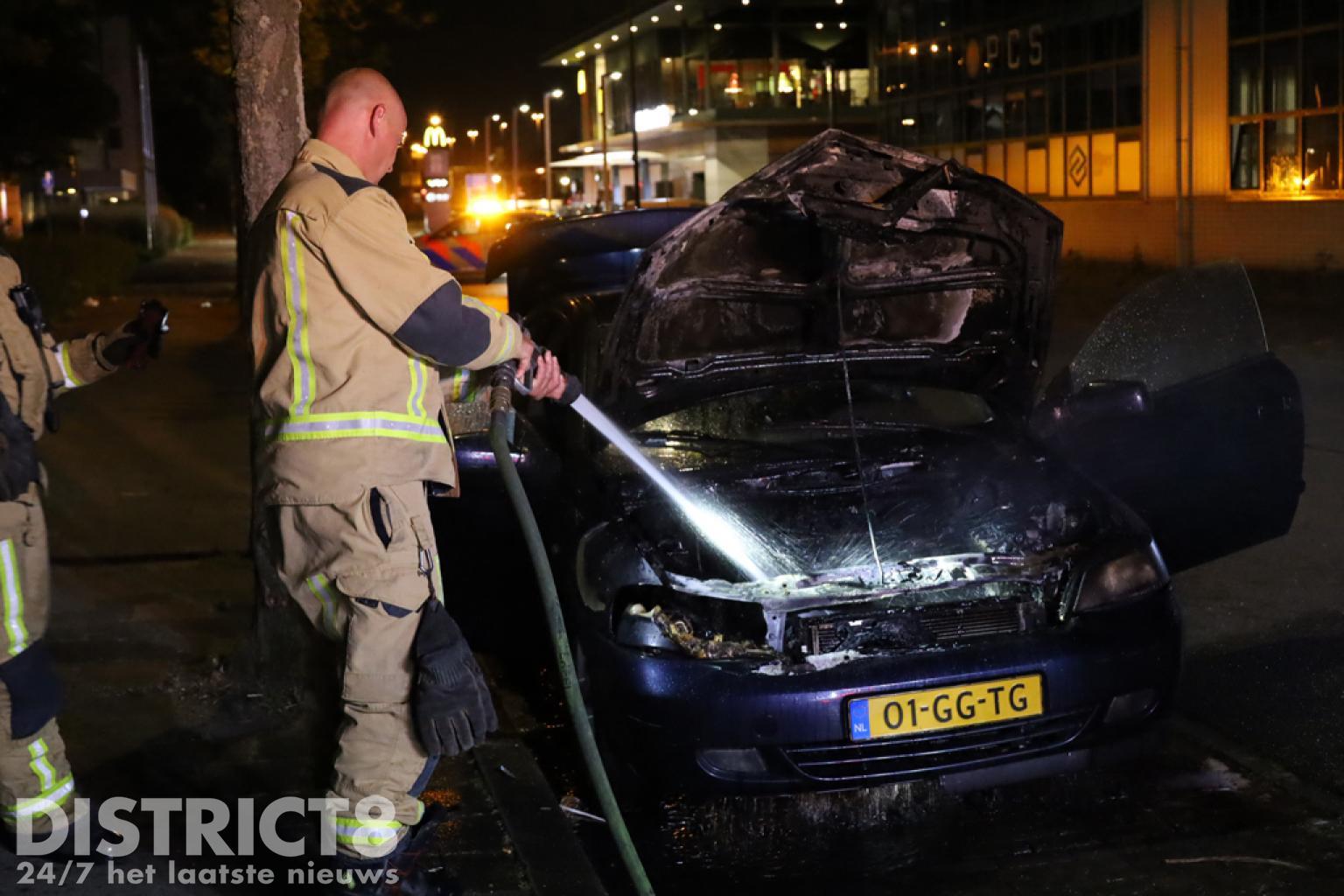 De brandweer kon snel ter plaatse komen om het vuur te blussen. De auto liep flinke schade op.