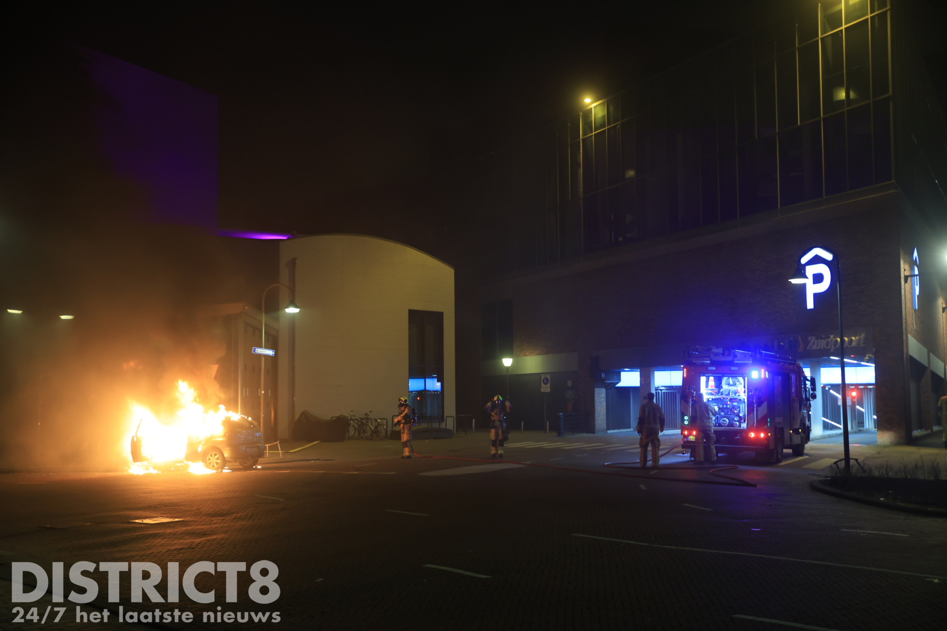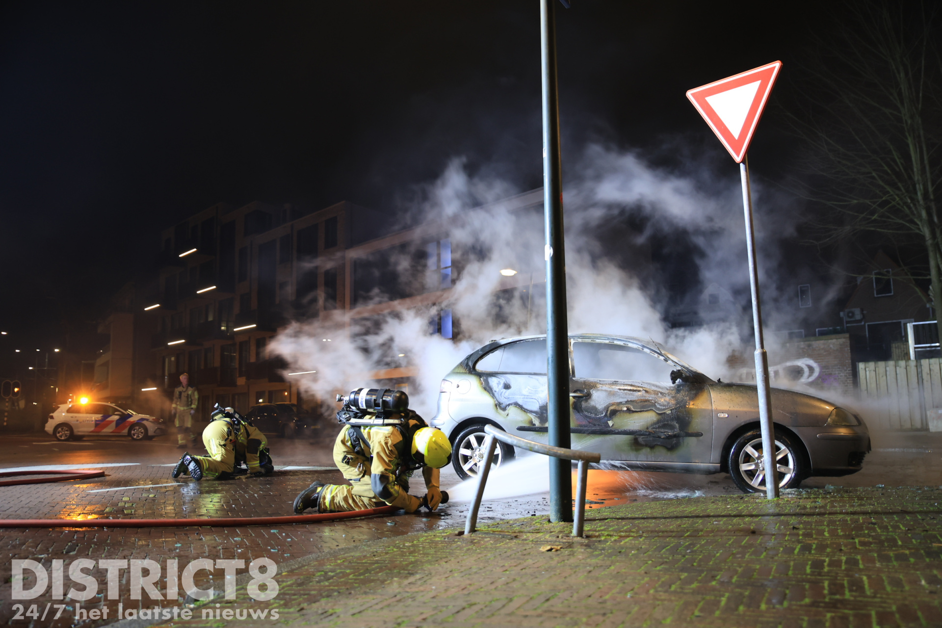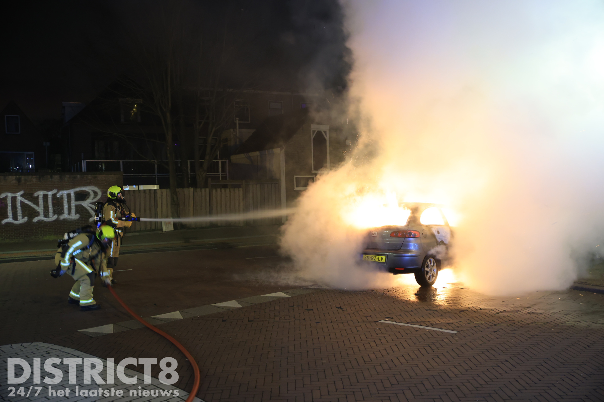 Bij aankomst van de brandweer sloegen de vlammen al uit de auto. De brandweerlieden hebben direct ingezet op het blussen van het vuur. Om goed bij de brandhaard te kunnen komen, heeft de brandweer de motorkap opengebroken.