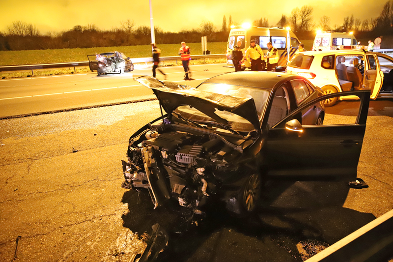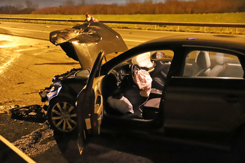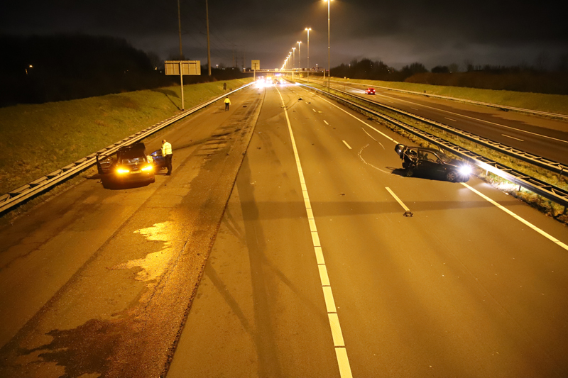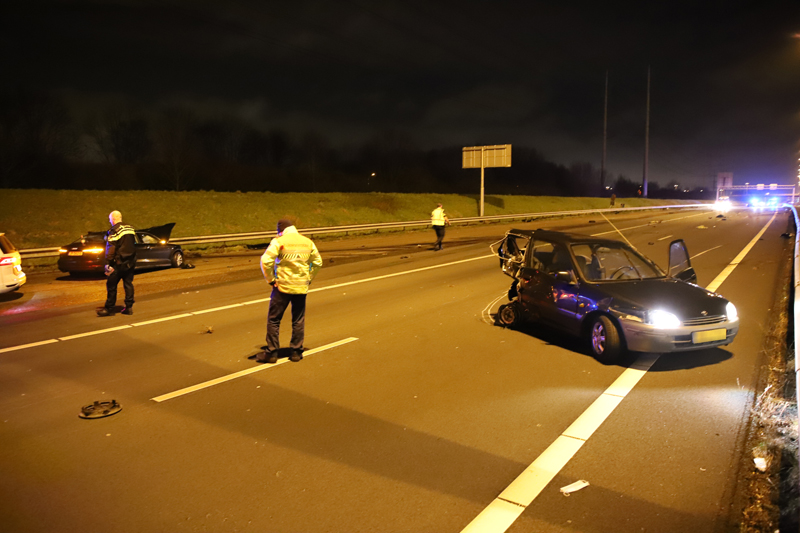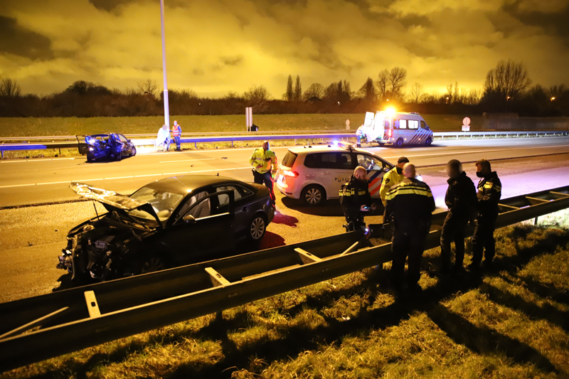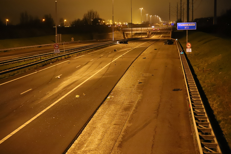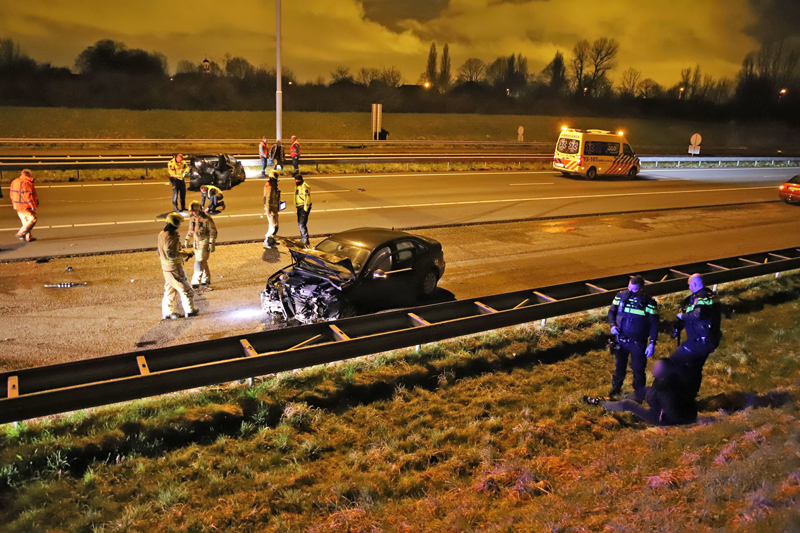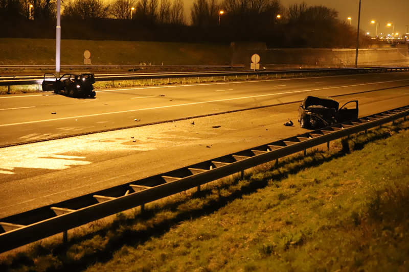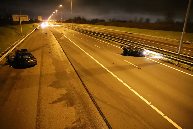 Schipluiden – Op de A4 bij Schipluiden heeft in de nacht van maandag 15 op dinsdag 16 maart iets voor 02:00 uur een kop-staart aanrijding plaatsgevonden tussen twee voertuigen.